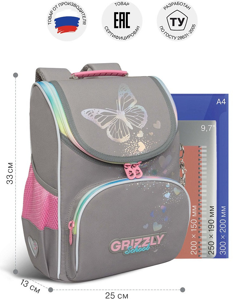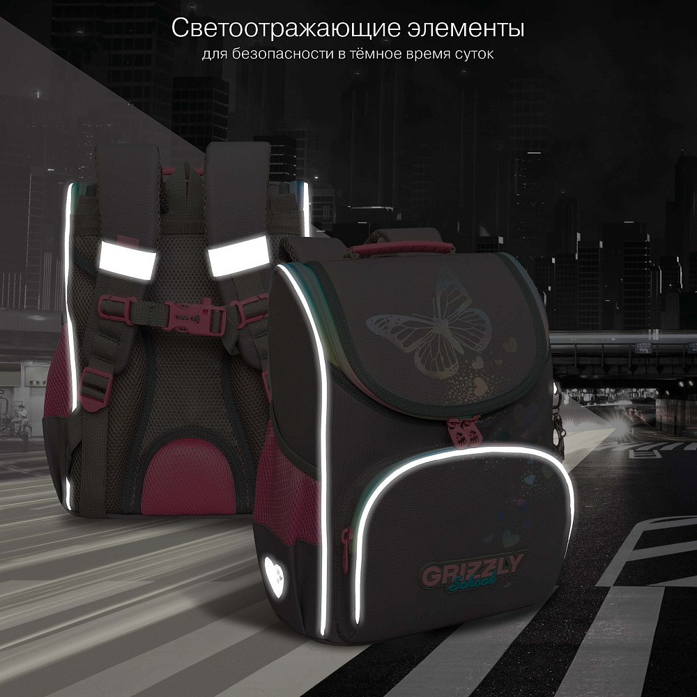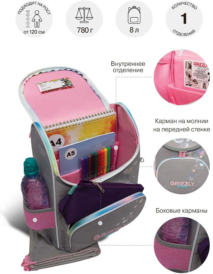 Ищите компактный, но при этом вместительный ранец для первоклассника? Тогда Вам подойдет суперлегкий рюкзак GRIZZLY серии RAm для детей школьного возраста ростом от 120 до 130 см. Жесткая конструкция ранца, анатомическая спинка, вентилируемые лямки и грудная стяжка равномерно распределяют вес по спине ребенка. Жесткое дно и боковины не деформируются при нагрузке и создают надежную защиту содержимого.