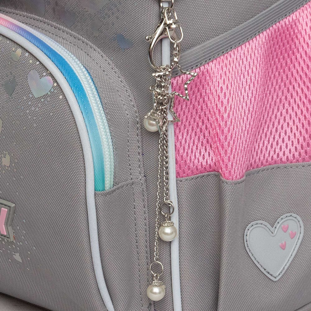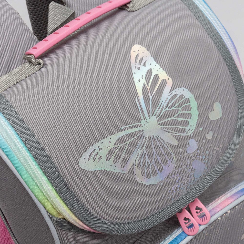 У школьного портфеля одно большое отделение с разделителем для учебных пособий формата А4, все лежит на своих местах. Рюкзак широко открывается, обеспечивая легкий доступ к содержимому. У него есть фронтальный карман на молнии для разных мелочей, удобная ручка и два вместительных боковых кармана. В комплекте к детской сумке прилагается мешок для обуви. Вечером ребенка точно заметят водители, т. к. со всех сторон есть отражатели. За счет водо- и грязеотталкивающей пропитки ранец долго остается как новый. Если он все же чем-то испачкался, мы рекомендуем ручную стирку в холодной воде.