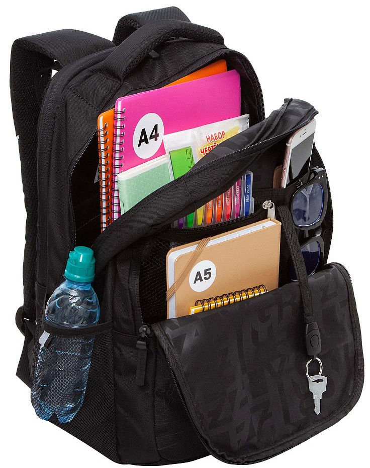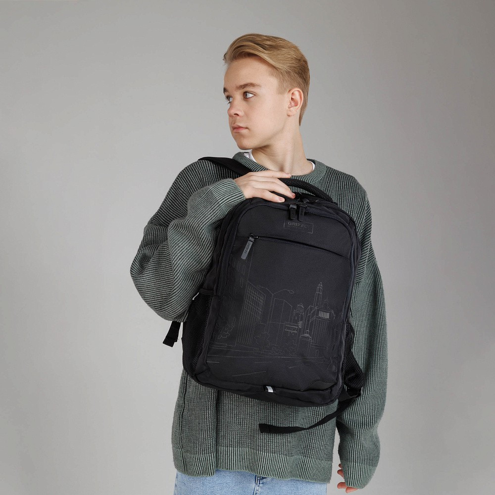 Молодежный рюкзак с анатомической спинкой. Мы создали легкий, прочный и вместительный портфель, который разработан специально для учащихся средней, старшей школы и студентов. Объем рюкзака 20 литров, размер 31×42×22 см. Портфель продуман до мелочей. В основном отделении есть карман для планшета или ноутбука 15″. Дополнительное переднее отделение оснащено съемным держателем для ключей и тремя карманами. В передний карман поместится куча мелочей, боковые карманы из сетки предназначены для бутылки с водой или зонта. Анатомическая спинка, нагрудная стяжка и удобные лямки позволяют равномерно распределять нагрузку на спину и плечи. У рюкзака удобная ручка для переноски, дополнительная ручка-петля и укрепленное дно. Материал портфеля с водо- и грязеотталкивающей пропиткой. Двунаправленные реверсные молнии с брендированными пуллерами на замках позволяют легко его открывать и закрывать. Школьная сумка имеет прочную фирменную подкладку GRIZZLY. Светоотражающие элементы с четырех сторон создают дополнительную безопасность в условиях недостаточной видимости. Рюкзак помогает мальчикам поддерживать порядок в вещах и сохраняет осанку.