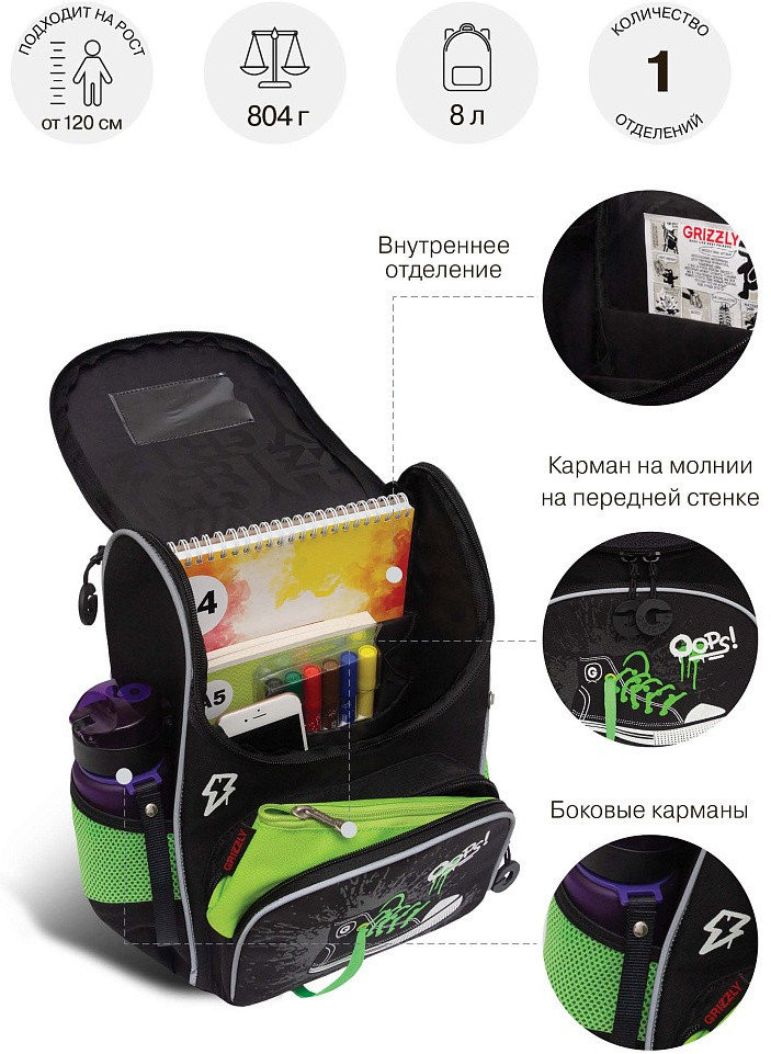 Grizzly Рюкзак школьный с мешком для обуви