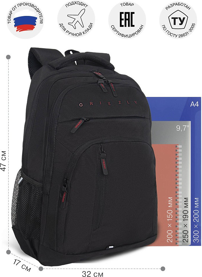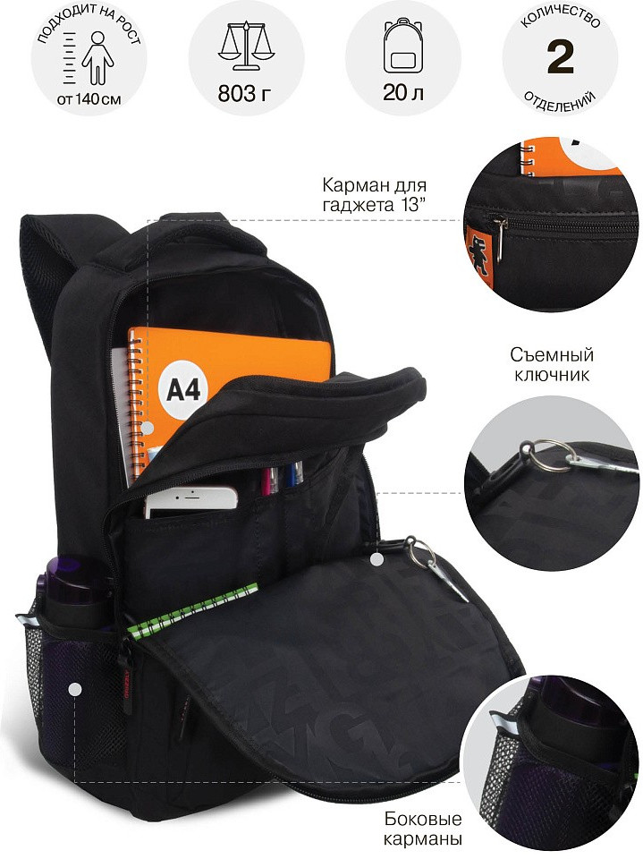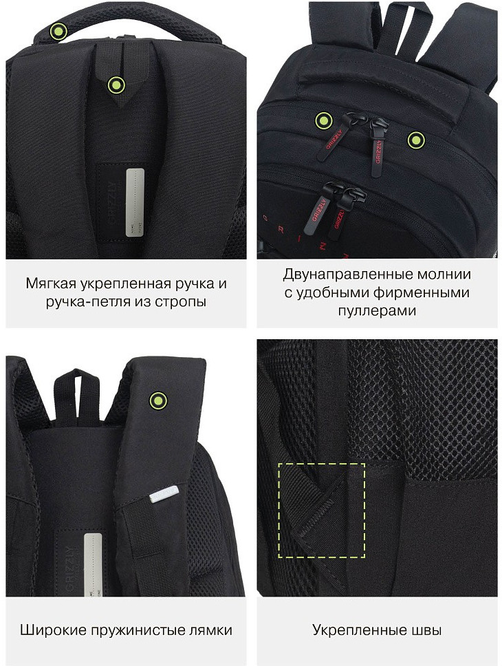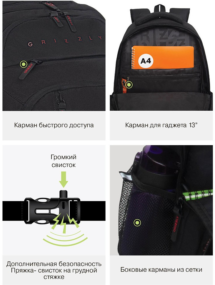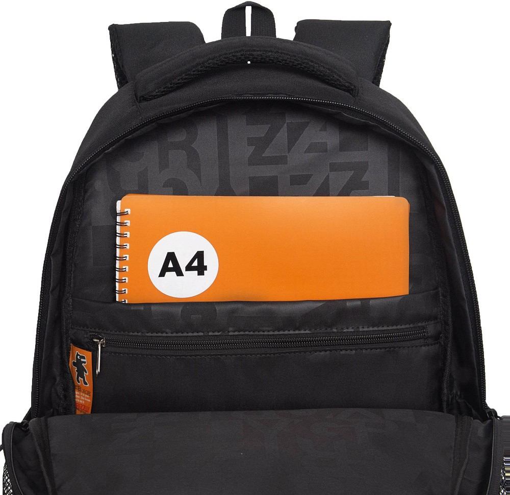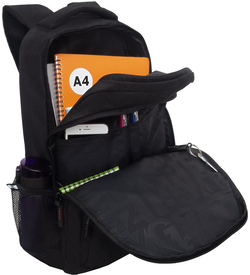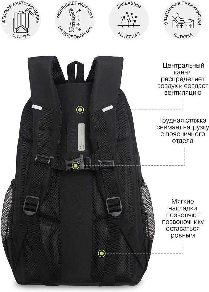 Подростку приходится носить с собой в школу столько вещей, что не каждый взрослый потянет? Анатомический школьный рюкзак разработанный GRIZZLY помогает сохранить здоровую спину. Эта модель сумки выполнена из прочного полиэстера и рассчитана на рост от 140 до 160 см. Как бы мальчик не разложил вещи внутри, рюкзак отлично держит форму и не перекашивается со временем и от тяжестей. Накладки дышащей анатомической спинки и нагрудная стяжка со свистком поддерживают позвоночник в правильном положении — равномернее распределяется вес, снимая напряжение с поясничной области и равномерно распределяя нагрузку по позвоночнику, не позволяя сутулится и сохраняя правильную здоровую осанку. Портфель вместительный — внутри помещается все, что может понадобиться в школе. Есть два больших отделения: одно для книг, учебников и документов формата А4, другое для тетрадей, и канцелярских принадлежностей. Много карманов внутри и снаружи, карман для ноутбука 13″ или планшета. Сетчатые карманы по бокам вместят в себя разные мелочи или бутылку с водой. Также на карманах есть небольшие светоотражающие вставки-крепления для ключей и брелока, они не останутся незамеченными в темное время суток. Минималистичный внешний вид очень нравится мальчикам. За счет водо- и грязеотталкивающей пропитки рюкзак долго остается как новый. Если он все же чем-то испачкался, мы рекомендуем ручную стирку в холодной воде при температуре 30 градусов без применения отжима. При легких загрязнениях без труда очищается с помощью влажной тряпочки.