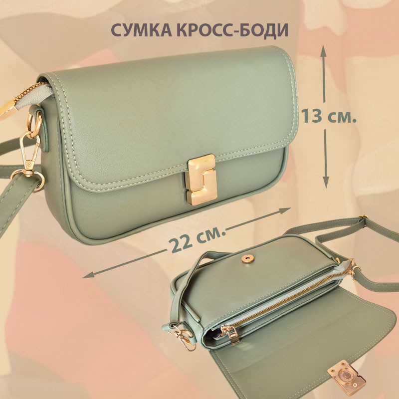 Представляемый подарочный набор состоит из комплекта: классическая сумка модного фисташкового цвета и яркий палантин, которые безупречно дополняют друг друга. Сумка кросс-боди отличного качества из экокожи имеет стильную металлическую золотистую застежку, что придает ей дорогой вид. Крепко сшита, надежные замки, ровные строчки, добротная фурнитура. Крышка сумки фиксируется магнитом, при этом внутренняя её часть застегивается на металлическую молнию. Внутри сумки предусмотрено три отделения, одно из которых застегивается на молнию. Помимо этого, предусмотрены дополнительные внутренние карманы: один на замке и другой без застежки. Отстёгивающийся плечевой ремень легко регулируется по длине. Такая сумка прослужит долгие годы! Её стиль предусмотрен как для повседневной носки, так и в качестве аксессуара, подчеркивающий вечерний наряд. Палантин соткан из смеси натуральных волокон хлопка и вискозы — он удивительно нежный, легкий и приятный на ощупь. Рисунок палантина имеет графический яркий принт, что позволяет ему подойти не только к сумке из данного набора, но и ко многим вещам гардероба.