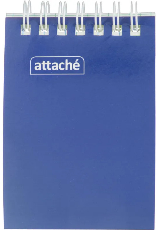 Блокнот Attache А7 формата, размер 70x100 мм.Законодательные и технические документы:Предназначен для записей, возможно нанесение логотипа. Лицевая обложка сделана из картона 215 г/кв.м с печатью в один цвет - синий, ламинированная. Внутренний блок содержит 60 листов из офсета плотностью 60 г/кв.м белого цвета, вид линовки - синяя клетка. Задняя часть обложки изготовлена из немелованного плотного картона 440 г/кв.м для более удобной (жесткой) фиксации в руке. Тип крепления евроспираль. Микроперфорации нет. Минимальный тираж под нанесение логотипа от 30 штук.Законодательные и технические документы: |