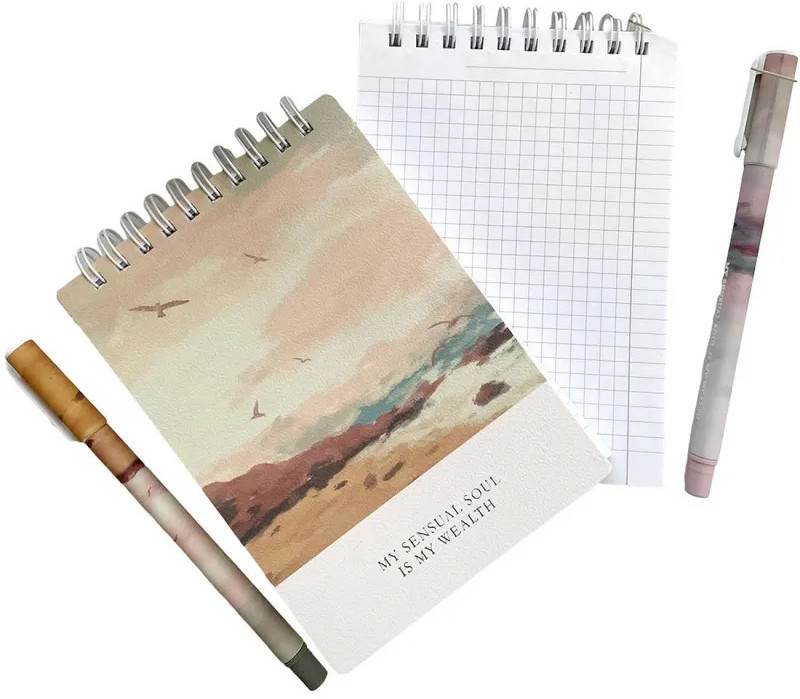 💳 Оплатить за товар можно при получении 🇰🇿 Есть бесплатная доставка по Казахстану от 1 дня 🎁 Копите бонусы с каждой покупки Утонченная и спокойная, с благородными оттенками цветов в палитре, коллекция "View" от Be Smart - это удивительно завораживающие пейзажи, нарисованные специально для искателей эмоций. Мы получили коллекцию очень непохожую на то, что было раньше, и от этого еще более индивидуальную.Карманный блокнот А6 формата (102х142 мм) на спирали сверху легко уместится даже в самый небольшой рюкзак или сумочку, чтобы в нужный момент можно было сделать важные заметки.Крепление на спирали позволяет незаметно для блокнота удалять листы и удобно перекидывать их при использовании.Обложка из мягкого, но прочного картона плотностью 320 г/кв.м с микротекстурированием и печатью цветного принта с внутренней стороны имеет приятную ламинацию, которая делает изделие прочнее и долговечнее. А скругленные уголки позволят мягкой обложке дольше сохранять первозданный вид.Внутренний блок в клетку с прямыми уголками на 100 листов (200 страниц) из высококачественной бумаги белизной 100% и плотностью 65 г/кв.м. |