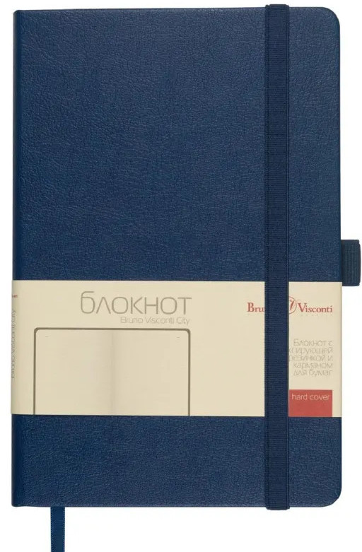 Блокнот Bruno Visconti City А5 80 листов в линейку темно-синий на сшивке (140х215 мм, 1 штука в упаковке). Базовая серия офисных блокнотов CITY от Bruno Visconti формата А5 - функциональный бизнес-аксессуар для ведения рабочих, личных записей. В нем нет ничего лишнего, но благодаря высококачественному переплетному материалу из экокожи он выглядит презентабельно. Твердая обложка с углами закругленной формы, фиксирующая резинка и ляссе в цвет обложки, петля для ручки, картонный карман для бумаги на внутренней стороне обложки - наделяют блокнот практичностью. 80 листов блока в серую линовку помогают вести записи четко и аккуратно. Блок изготовлен из бежевой бумаги плотностью 70 кв/м. |