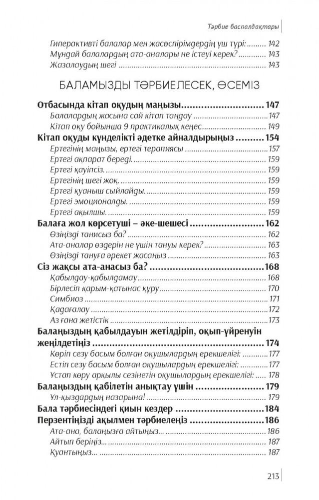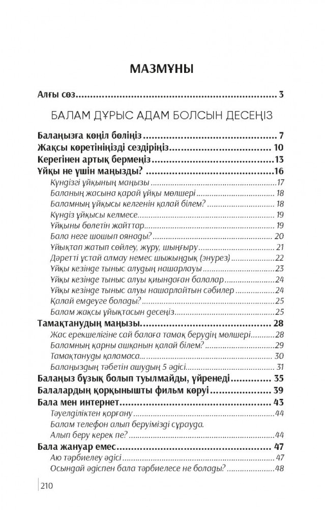 💳 Оплатить за товар можно при получении 🇰🇿 Есть бесплатная доставка по Казахстану от 1 дня 🎁 Копите бонусы с каждой покупки Бұл кітап ата-аналарға бала тәрбиесінде көмекшіболады. Ұрпағын дұрыс тәрбиелеуді үйренгісі келетін ата-аналарға осы заманға сай ақыл-кеңестер берілген. Кітаптың мазмұнында балаға көңіл бөлуден бастап денсаулығына қарау, тамақтану, ұйқы, бала мен балабақша, мектеп, орта, дос табу, бала мен смартфон, фильм көру, кітап оқу сияқты өзекті тақырыптар қозғалады. Кітап тек жас ата-аналарға емес, ата-әжелерге, балабақша тәрбиешілері мен мектеп ұстаздарына да пайдалы. Ұрпағын дұрыс тәрбиелеуді мақсат еткен әр оқырман білуі тиісті қағидаларды екі автор өмірлік тәжірибесі арқылы қорытқан. Бүгінде ұл-қызымызға дұрыс жол көрсете алу, оларға үлгі бола білуіміз — әрқайсымыздың ізгі міндет, борышымыз. Кітапта отбасы, қоғамдағы бала тәрбиесіне байланысты мәселелер қамтылған. |