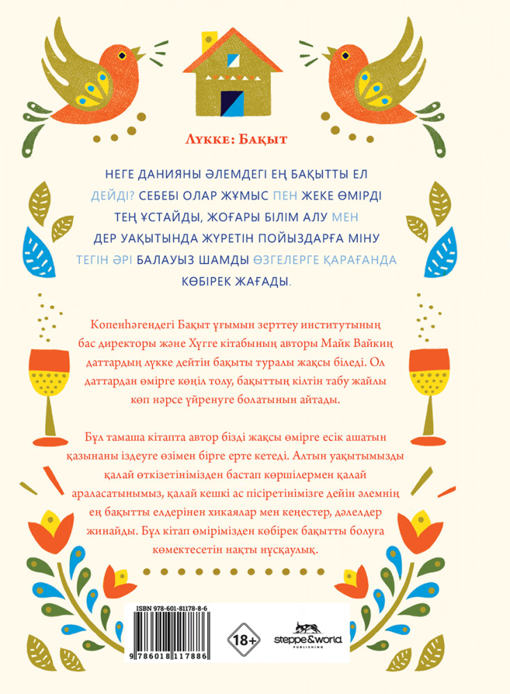 💳 Оплатить за товар можно при получении 🇰🇿 Есть бесплатная доставка по Казахстану от 1 дня 🎁 Копите бонусы с каждой покупки Копенһәгендегі Бақыт ұғымын зерттеу институтын құрған Майк Вайкиң әлемдегі бақытты адамдарға ортақ ерекшеліктерді тапқан. Ол өміріне шаттық пен жарық құя білген жандарды іздеп тауып, олардан не үйрену керегін түсінген. Автор оқырманды баға жетпес қазынаны — бақыттың кілтін табуға шақырады. Ал оны іске асыру-асырмау — әркімнің өз таңдауы. |