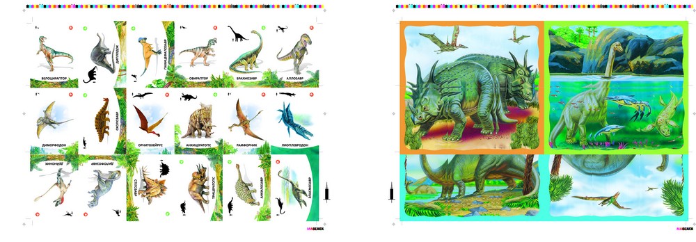 Карточки очень понравились. Всего представлено 34 динозавра и 2 карточки с заданиями. На оборотной стороне каждой карточки часть пазла. Всего можно собрать 6 пазлов.