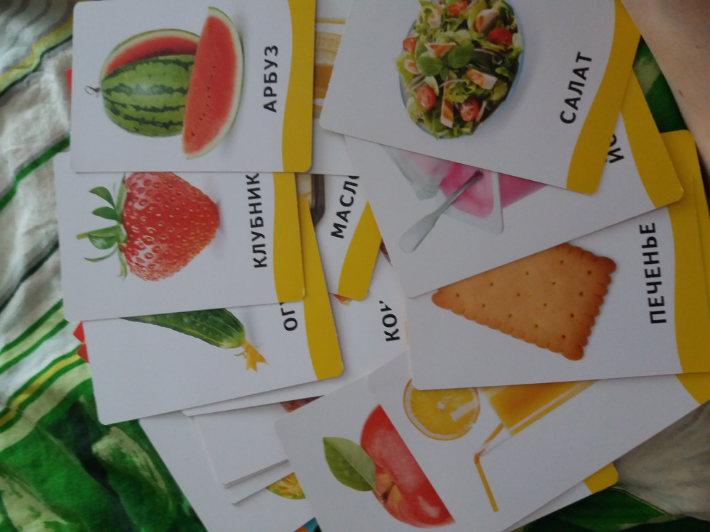 Карточки действительно очень ярки и картинки подобраны грамотные. Брали Азбуку, мое тело, мой дом и еда.