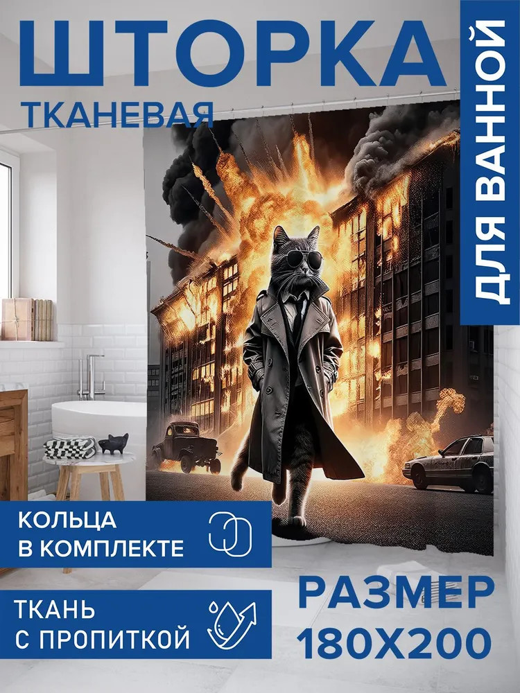 JoyArty Штора для ванной комнаты «Кот-спецагент»-20% +94