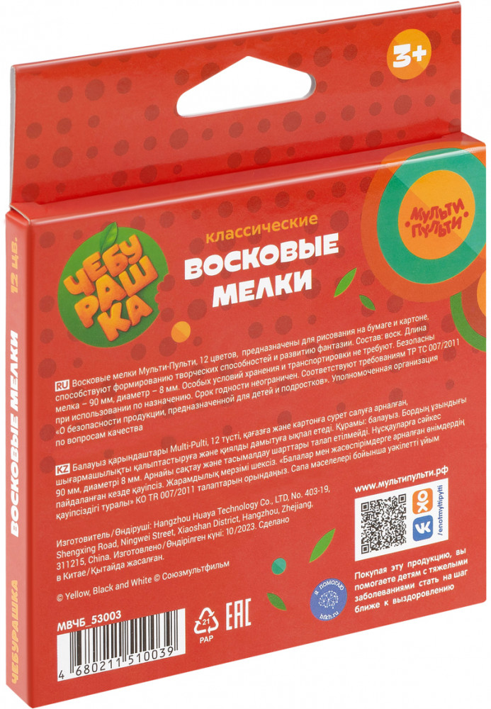 💳 Оплатить за товар можно при получении 🇰🇿 Есть бесплатная доставка по Казахстану от 1 дня 🎁 Копите бонусы с каждой покупки Серия: Чебурашка Набор из 12 круглых восковых мелков «Мульти-Пульти» эксклюзивной серии «Чебурашка» отлично подходит для воплощения смелых творческих идей. Он включает в себя 12 ярких цветов: жёлтый, зелёный, синий, красный, чёрный, коричневый, оранжевый, светло-коричневый, голубой, светло-зелёный, тёмно-синий и фиолетовый. Длина мелка составляет 90 мм, а диаметр корпуса — 8 мм. Материал предназначен для рисования на бумаге, картоне, дереве, керамике. |