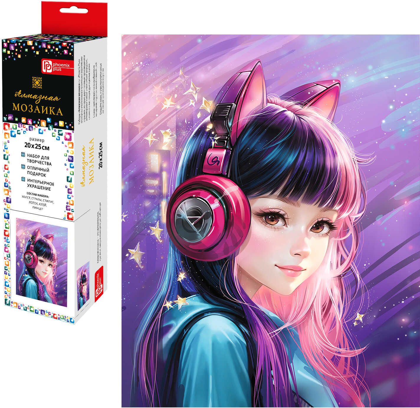 Феникс + Мозаика алмазная «Девочка в наушниках»-25%