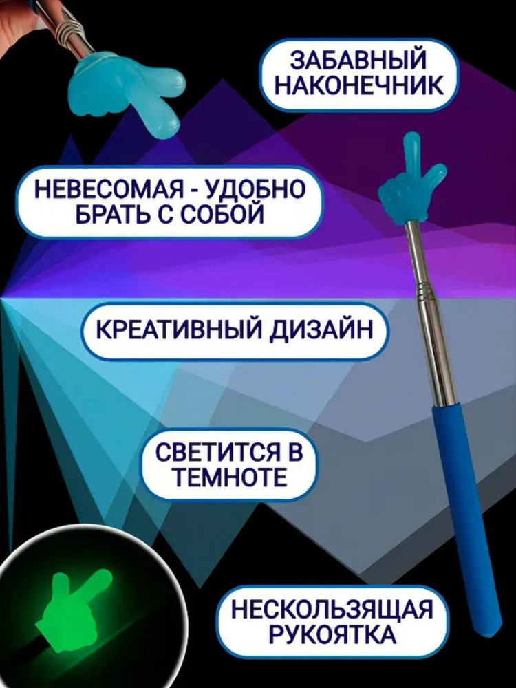 В данный момент этот товар отсутствует в продаже. Возможно, у нас найдется аналогичный или похожий товар здесь. Зеленая светящаяся телескопическая указка с пальцем. Эта волшебная указка станет вашим верным помощником, будь то деловая встреча, презентация или просто увлекательная игра с детьми.
