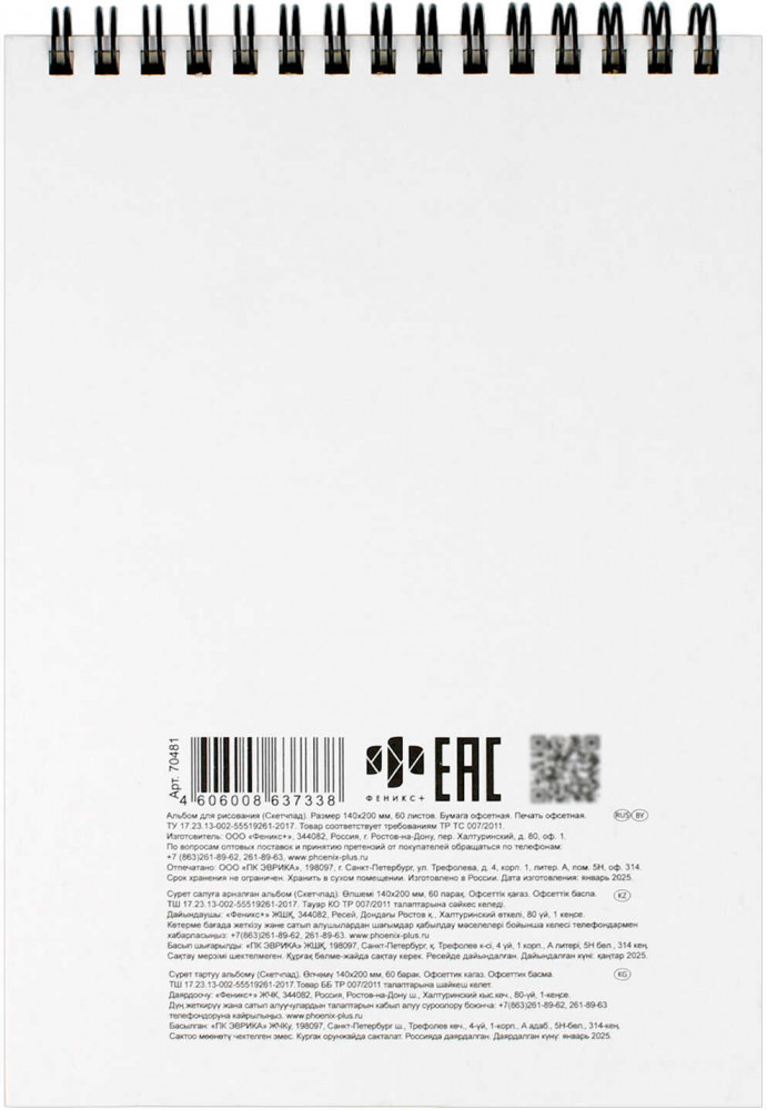 💳 Оплатить за товар можно при получении 🇰🇿 Есть бесплатная доставка по Казахстану от 1 дня 🎁 Копите бонусы с каждой покупки Серия: Сердитые звери Альбом для рисования (скетчпад) 140×200 мм — стильное пространство для ваших идей и вдохновения. Удобный квадратный формат и 60 белоснежных листов из качественного офсетного картона 100 г/м² отлично подойдут для эскизов, зарисовок, набросков и записей. Бумага подходит для карандашей, ручек, фломастеров и гелевых линеpов. Обложка с полноцветной печатью делает скетчпад не только практичным, но и эффектным — такой альбом приятно держать в руках и показывать другим. Гребень по короткой стороне обеспечивает удобное открытие и комфортную работу на любой странице. |