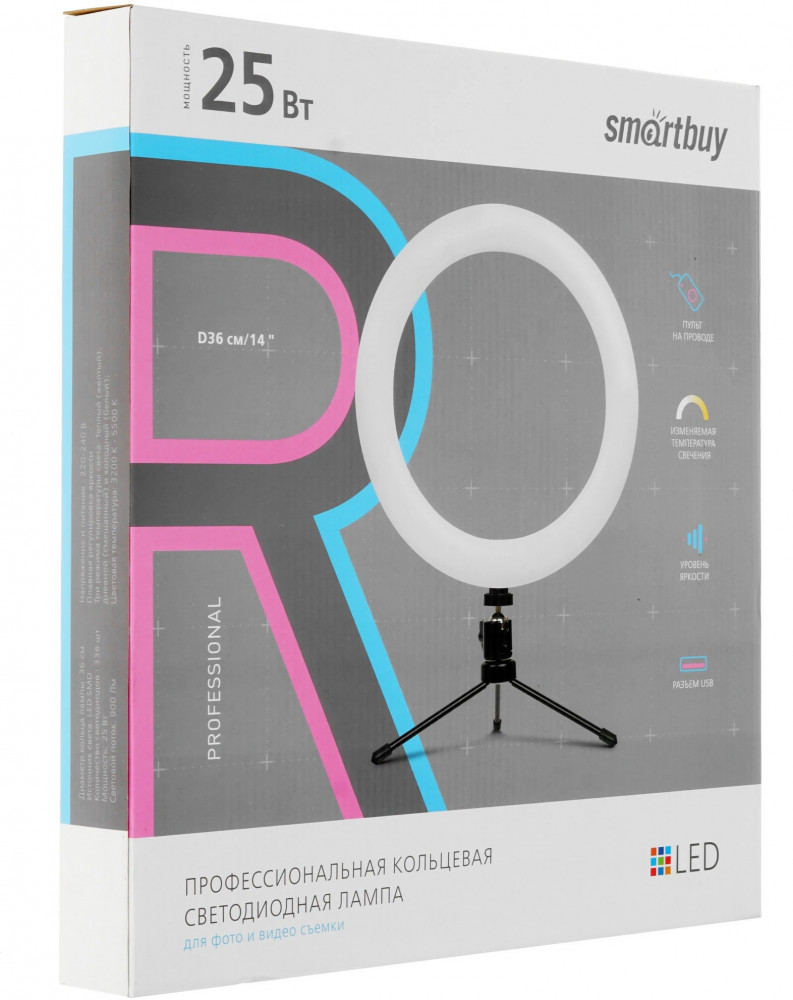 💳 Оплатить за товар можно при получении 🇰🇿 Есть бесплатная доставка по Казахстану от 1 дня 🎁 Копите бонусы с каждой покупки Кольцевая лампа Smartbuy SBL-TTL-14 применяется в качестве дополнительного источника света при съемке фотографий и видео. Она оснащена интегрированными светодиодными элементами с тремя режимами цветовой температуры в пределах 3200-5500K. Матовая поверхность рассеивателя формирует равномерное освещение. Конструкция устройства предусматривает регулировку угла наклона светового кольца. Лампа Smartbuy SBL-TTL-14 оснащена кабелем с разъемом USB для организации питания и компактным пультом ДУ. В комплекте предусмотрен держатель для смартфона. |