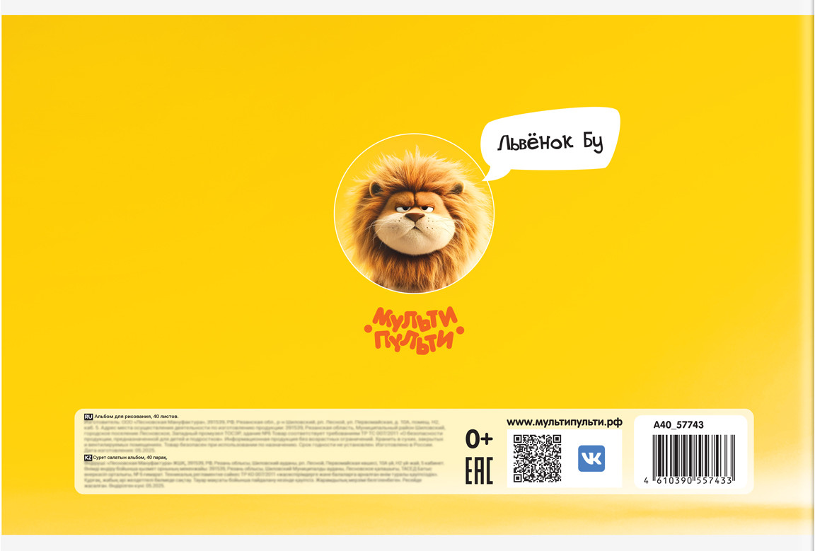 Мульти-Пульти Альбом для рисования «Львенок Бу»-20% +7