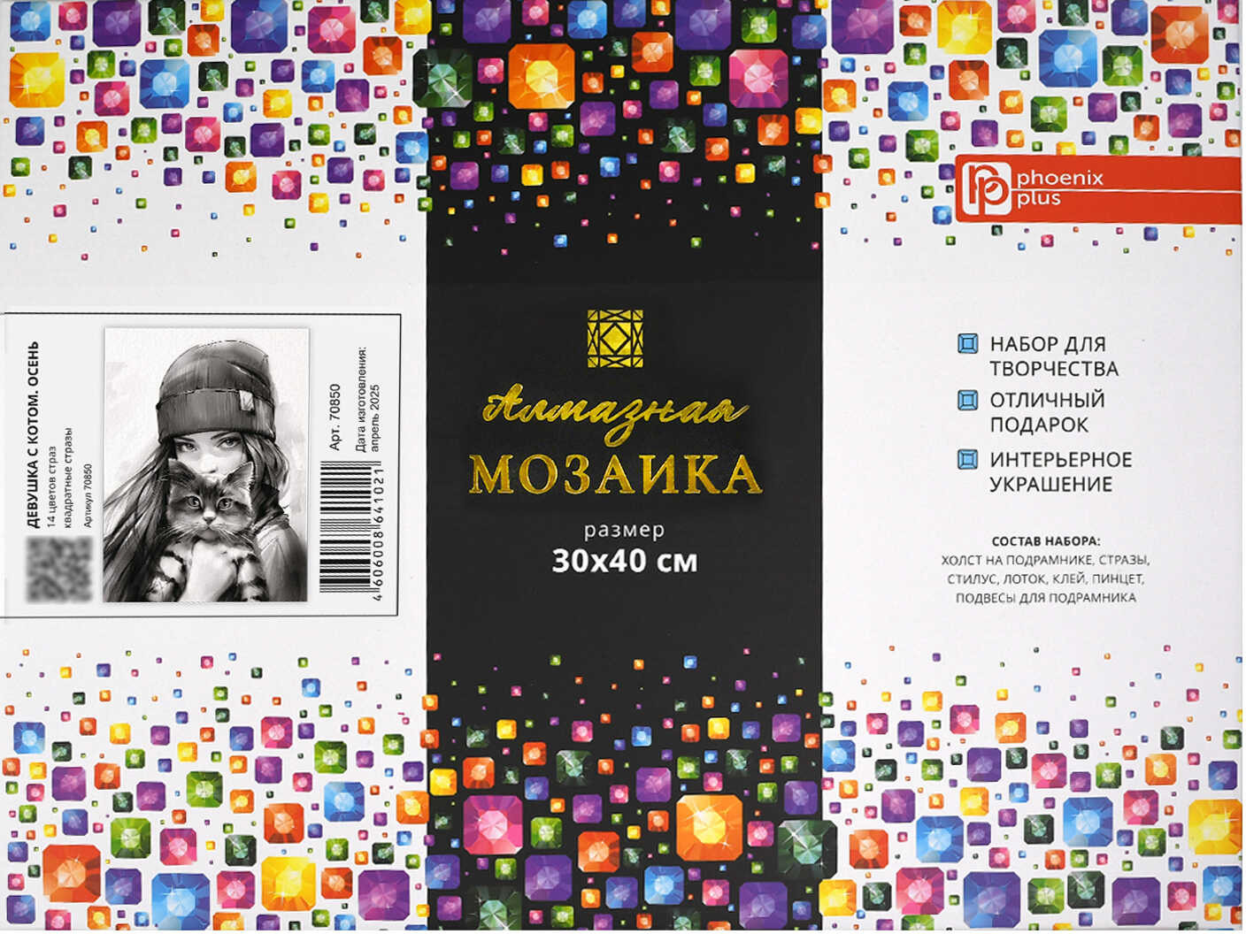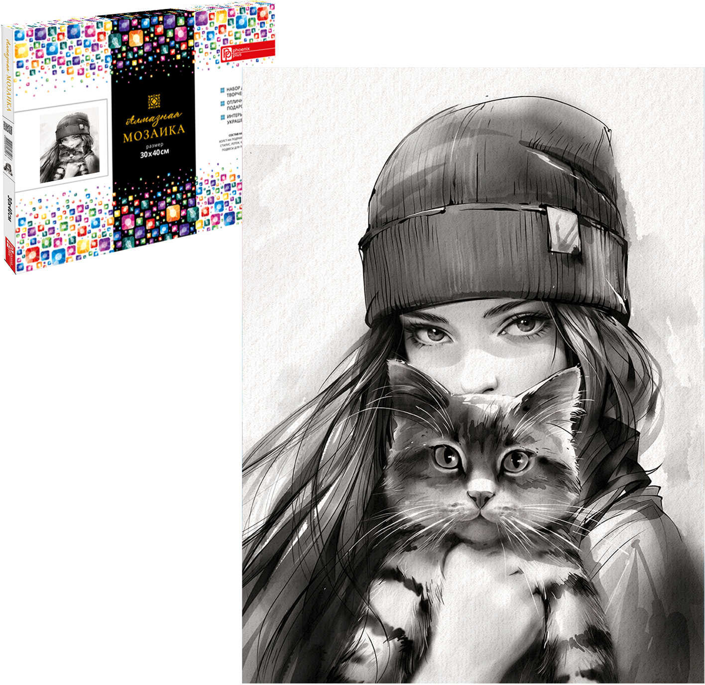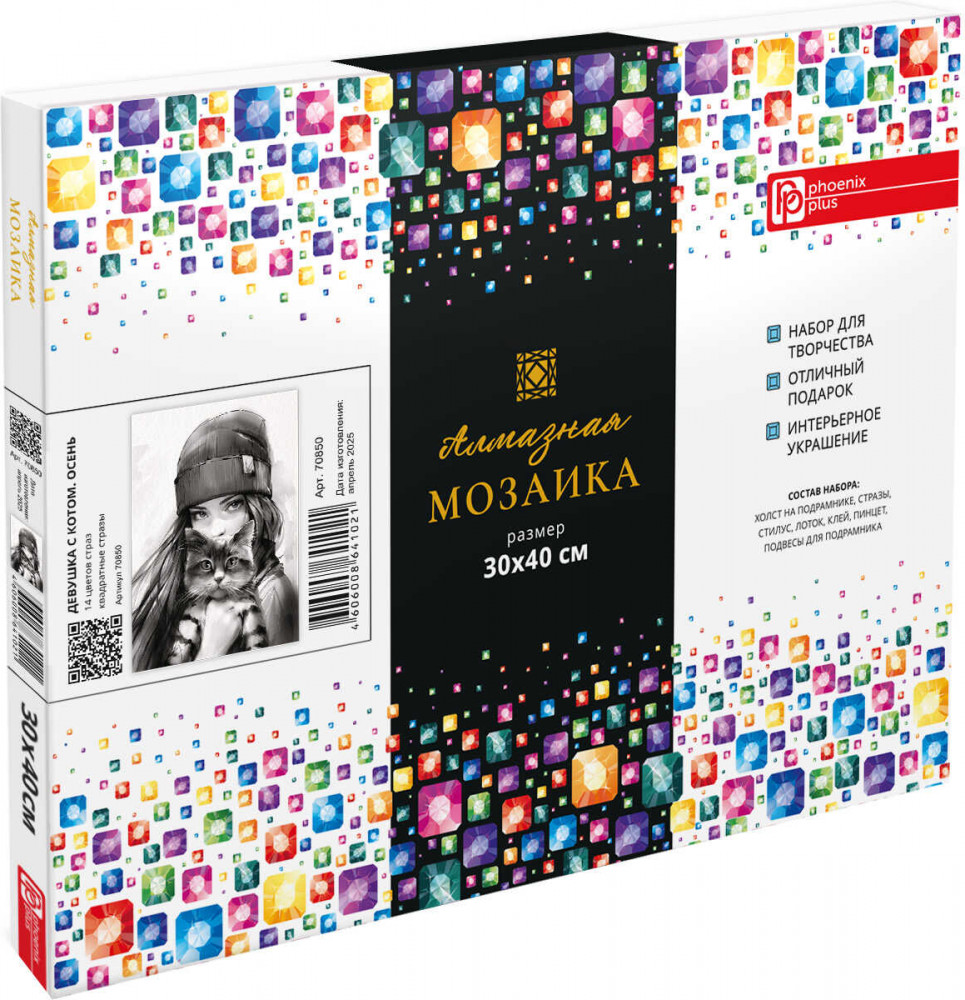 Феникс + Мозаика алмазная с подрамником «Девушка с котом. Осень»-35% +152