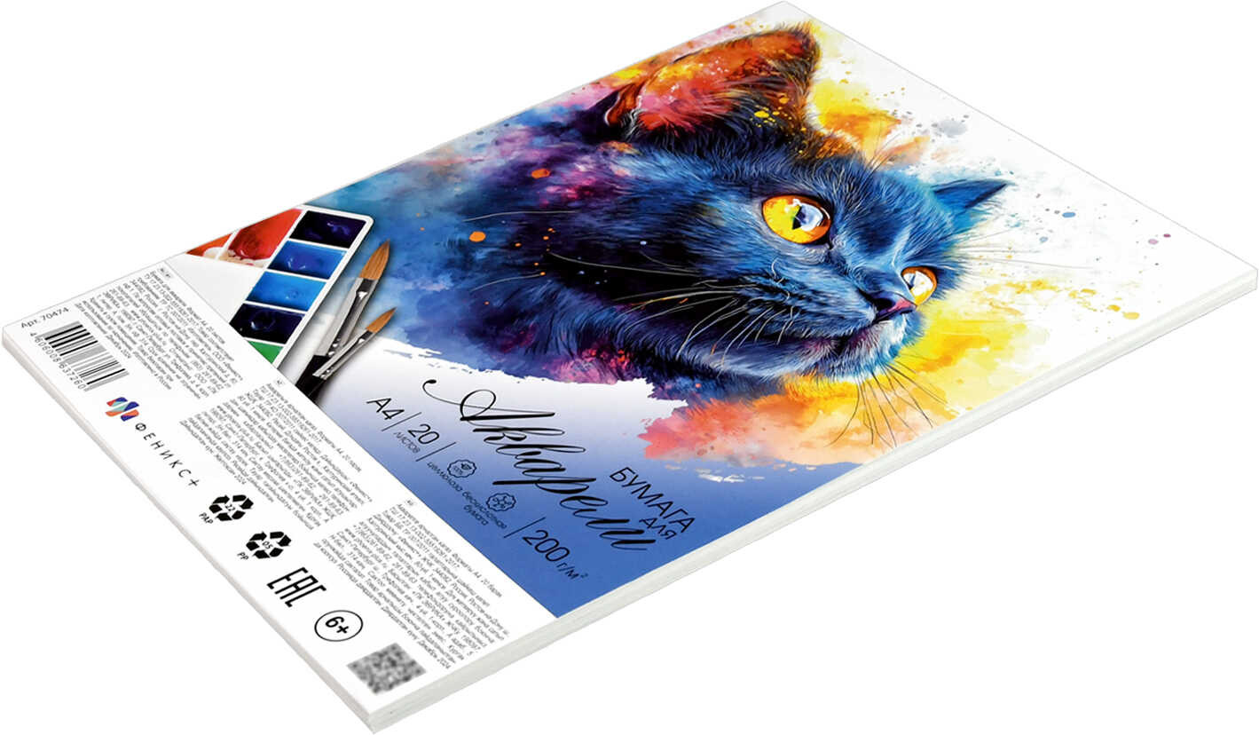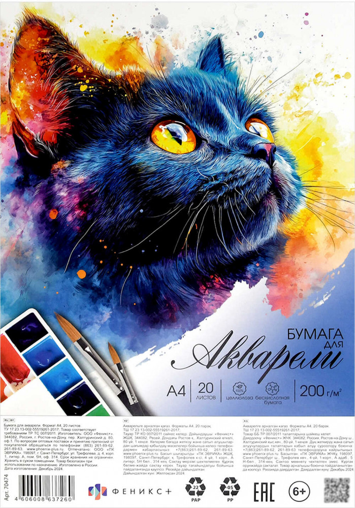 Феникс + Набор бумаги для акварели «Чёрный котенок»+53