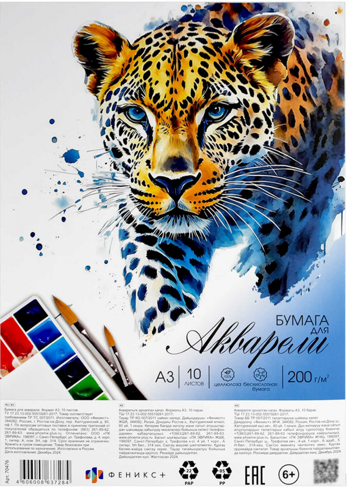 Феникс + Набор бумаги для акварели «Акварельный леопард»-25% +41