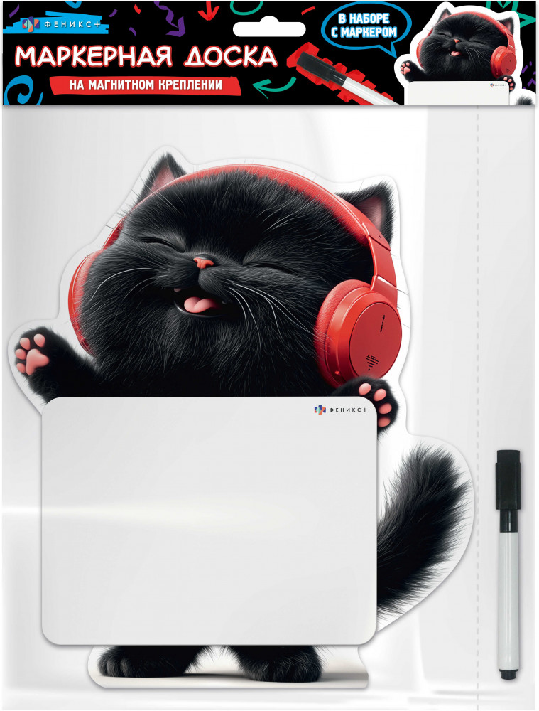Феникс + Доска магнитная c полем для рисования и письма «Котенок в наушниках»-25% +48