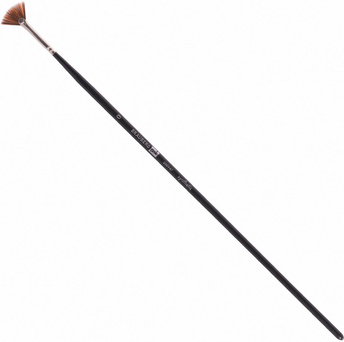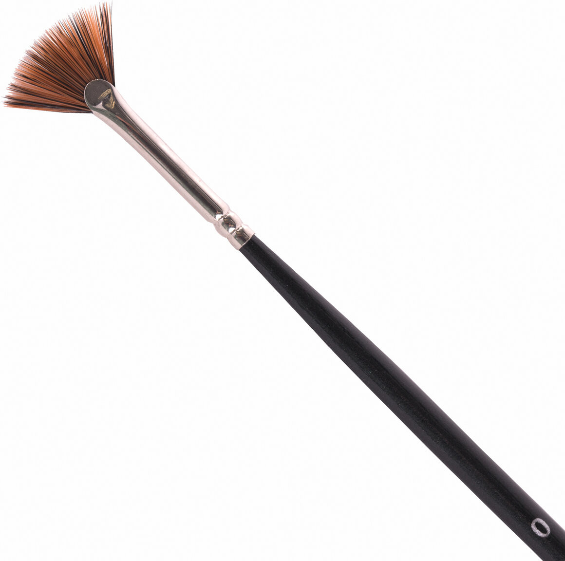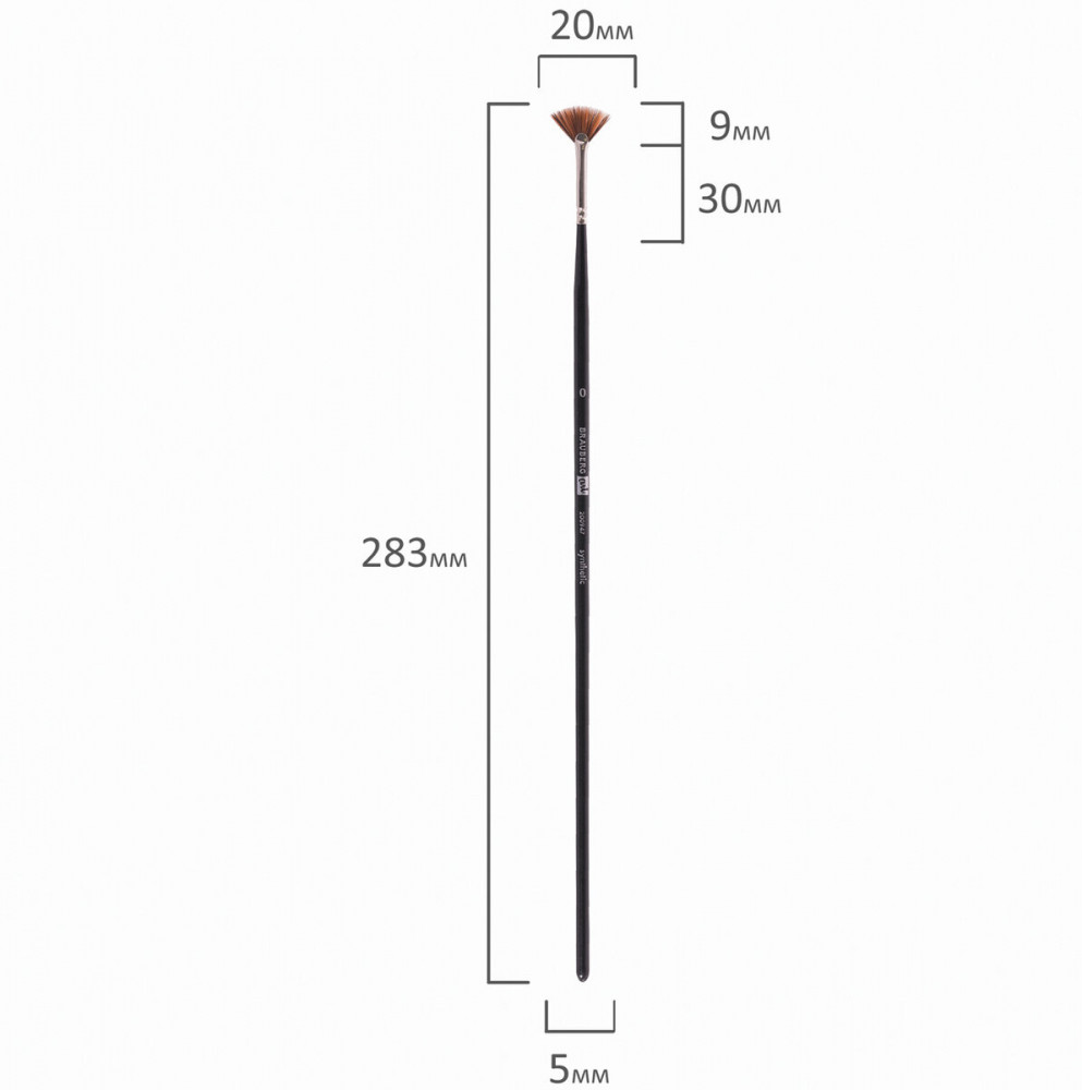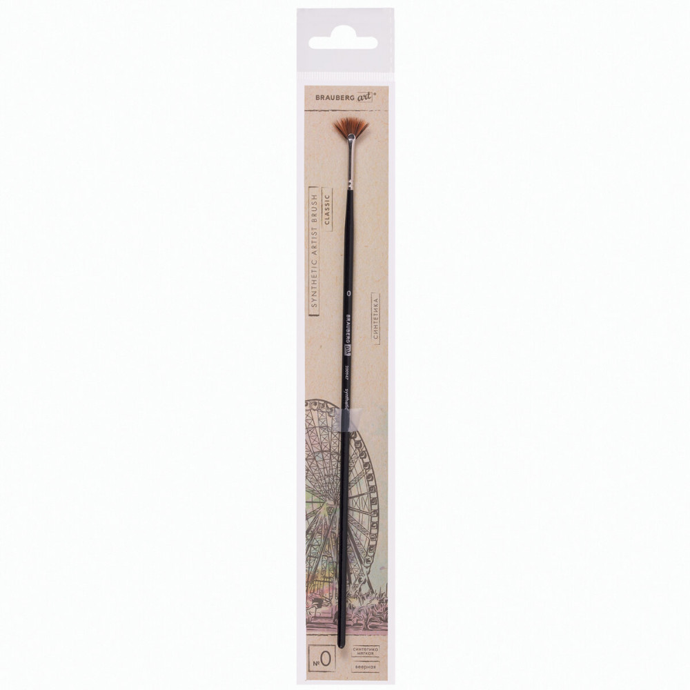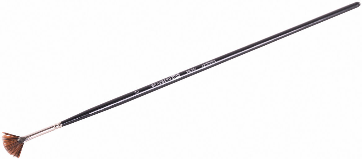 Кисть изготовлена с применением высококачественной синтетики, имитирующей свойства натурального волоса колонка. Отличается универсальностью в использовании, обусловленной упругостью ворса и прекрасными впитывающими свойствами пучка. Длинная ручка из древесины покрыта лаком, что защищает ее от воздействия красок и влаги. Форма пучка — веерная № 0, номер кисти соответствует реальной ширине пучка в миллиметрах. Упаковка — ОПП-пакет с европодвесом и картонной подложкой.