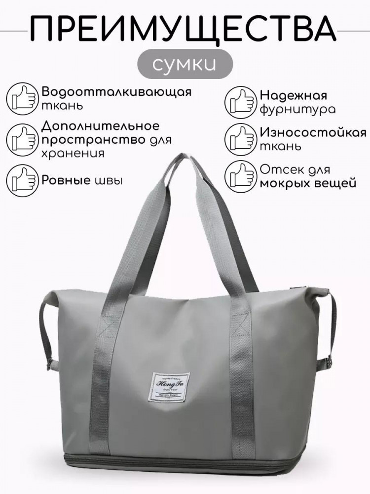 Эту дорожную сумку можно использовать как ручную кладь, спортивную или повседневную. Она недорогая и вместительная, легкая и складная. Отлично подойдет для использования как шоппер, для покупок в магазинах и торговых центрах или для счастливого похода в роддом. Эта сумочка с увеличивающимся дном, её можно брать для поездок в виде багажа во время любых путешествий, на пляж, на фитнес, на плавание или йогу, для занятий любым видом спорта. По габаритам подойдет для всех авиалиний. Можно носить на руках и как сумку через плечо, или положить на чемодан с помощью фиксированной ручки и использовать как ручную кладь в самолете. Изготовлена из легкого, водонепроницаемого, износостойкого и водоотталкивающего материала. У неё очень широкое применение: можно носить в тренажерный зал, в спортзал, на танцы, в бассейн или для покупок. Сверхпрочная ткань, устойчивая к загрязнениям, не требует особого ухода. Ткань с внешней стороны гладкая, матовая и водоотталкивающая. Молния рассчитана на длительный срок службы. Дополнительно имеет внутренний карман для мокрых вещей. Очень простая в уходе, можно стирать в машинке или протереть влажной тряпкой.