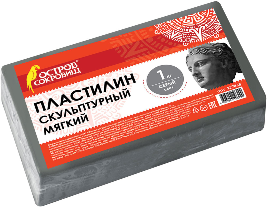 Отлично держит форму и устойчив к перепадам температуры. Не оставляет пятен, не липнет к рукам. Мягкий скульптурный пластилин подойдёт для начинающих любителей лепки. Его можно использовать для моделирования несложных фигур. Пластилин весом 1кг упакован в полипропиленовую пленку.