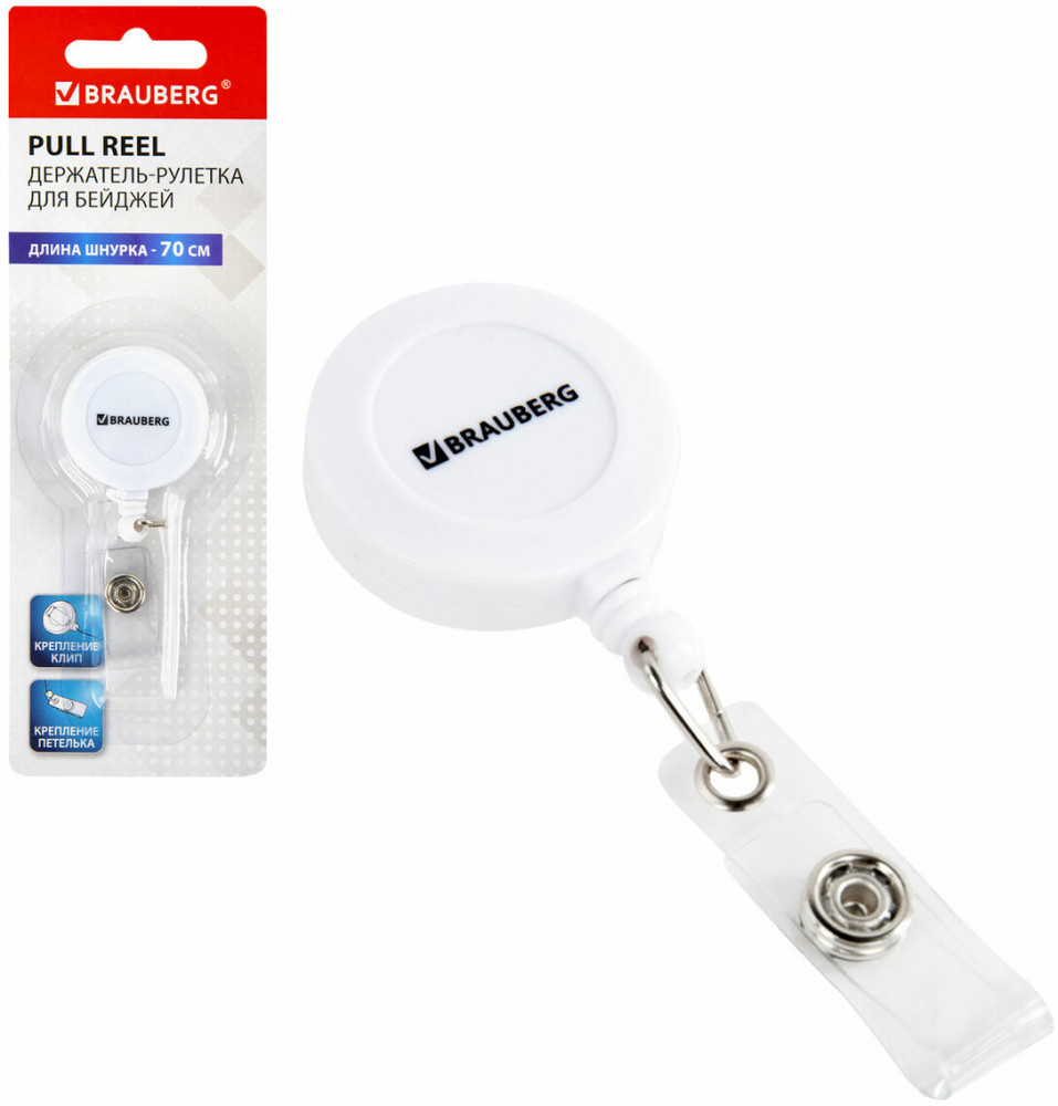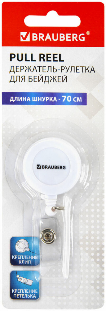 Brauberg Держатель-рулетка для бейджейВ данный момент этот товар отсутствует в продаже. Возможно, у нас найдется аналогичный или похожий товар здесь. Держатель-рулетка Brauberg предназначен для крепления бейджей, магнитных карт, пропусков, ключей и мелкого инструмента. Рулетка с петелькой и клипом подходит для ношения на поясе. Длина шнурка — 70 см. Пластиковый корпус белого цвета. Упакована в блистер с европодвесом. |