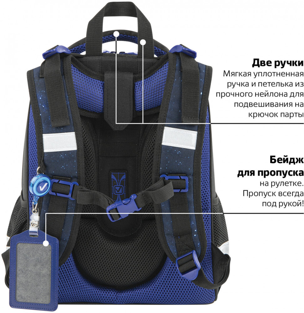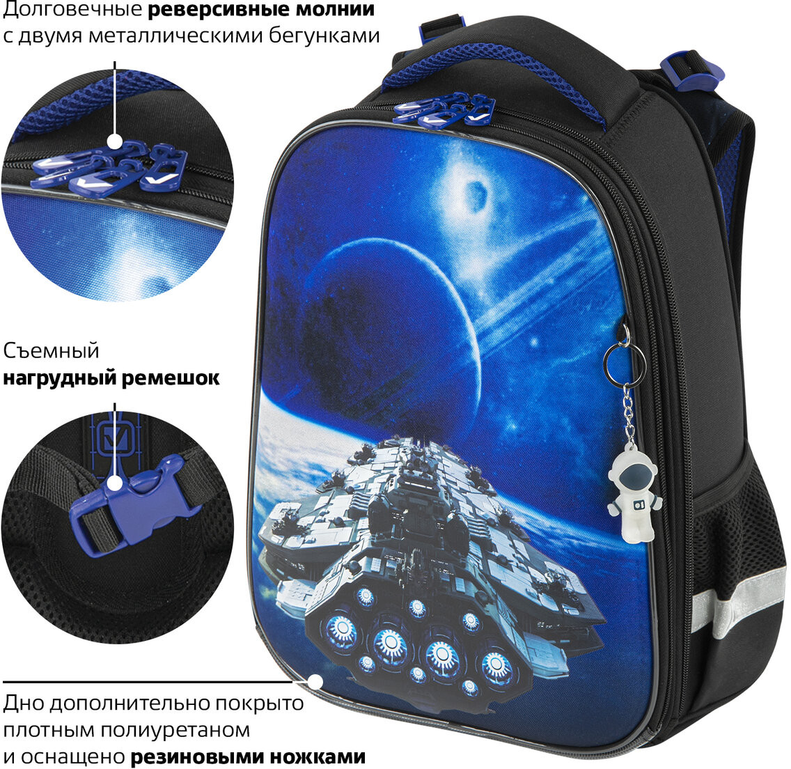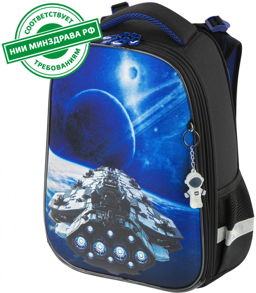 В данный момент этот товар отсутствует в продаже. Возможно, у нас найдется аналогичный или похожий товар здесь. Серия: Premium Ранец Brauberg Premium самой популярной капсульной формы среди ранцев. Изготовлен из легкого, формоустойчивого, экологичного материала EVA с качественной и яркой печатью и различными эффектами. В комплекте с ранцем поставляется брелок-подвеска. Ранцы Brauberg Premium протестированы НИИ гигиены и охраны здоровья детей и подростков ФГАУ «Национальный медицинский исследовательский центр здоровья детей». В рамках проведенных исследований* было установлено, что конструкции и материалы ученических ранцев соответствуют современным эргономическим требованиям и способствуют формированию здоровой осанки у школьников. Рисунок на передней панели ранца выполнен шелкографией, что делает картинку очень реалистичной, а оригинальный брелок-подвеска дополняет космическую тему ранца.