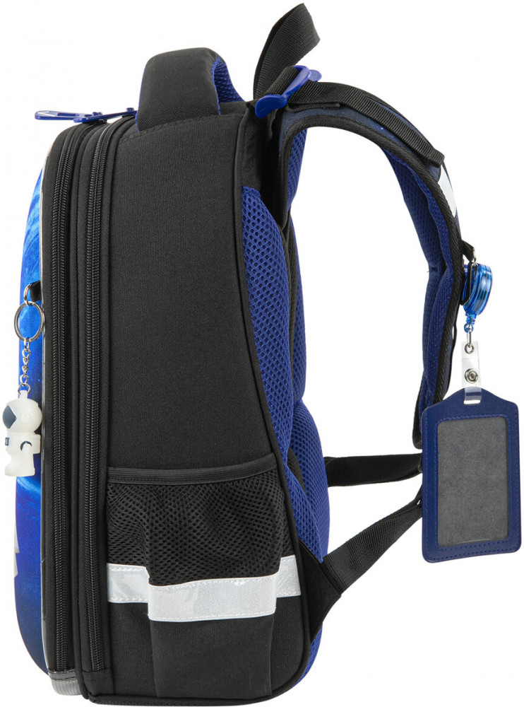 Ранец легко открывать и закрывать одной рукой с любой стороны — каждое отделение имеет долговечную реверсивную молнию с двумя металлическими бегунками. Нести ранец будет удобно не только на плечах, но и в руке за прочную уплотненную ручку. Также имеется специальная петелька из плетеной нейлоновой нити для подвешивания на крючок парты. Модель имеет боковые карманы на резинке, в которых можно разместить бутылочку, термос или зонт. Светоотражающие элементы ранца расположены спереди, на торцах и на лямках. Они необходимы для безопасности пользователя в темное время суток. Дно ранца покрыто плотным полиуретаном для защиты от попадания влаги. Дополнительно имеются резиновые ножки для устойчивости и защиты от загрязнений. В комплекте с ранцем поставляется бейдж для пропуска на рулетке. Для его надёжной фиксации на одной из лямок ранца имеется специальное металлическое кольцо. Это очень удобно и экономит массу времени — ребенок просто прикладывает пропуск к турникету, вытягивая его на нужное расстояние, а затем рулетка автоматически возвращается обратно. Пропуск всегда под рукой! Декоративный брелок-подвеска в подарок.