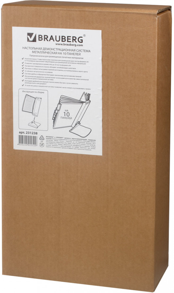 Brauberg Демосистема настольнаяВ данный момент этот товар отсутствует в продаже. Возможно, у нас найдется аналогичный или похожий товар здесь. Настольная демонстрационная система BRAUBERG позволяет удобно и быстро разместить информацию о компании, о предлагаемых товарах, услугах и ценах, инструкции для персонала и др. 10 двухсторонних панелей серого цвета позволяют разместить одновременно до 20 листов формата А4. Прочные и гибкие литые рамки панелей изготовлены из полипропилена, пригодного для повторной переработки и дальнейшего использования. Демопанели оснащены съемными ярлычками-табуляторами для маркировки и удобного поиска нужной информации. Карман демопанели из прочного прозрачного материала с антибликовым покрытием надежно защитит документы от внешних воздействий. Наклонное расположение панелей и устойчивое металлическое основание гарантируют удобство пользователю и быстрый доступ к документу. Возможно настенное размещение.Стильный черный цвет металлического корпуса подойдёт для большинства современных интерьеров. Превратите свою рекламную или справочную информацию в эффективный инструмент с помощью нашей демонстрационной системы BRAUBERG! Компактна и удобна в использовании. Приобретайте наш товар уже сегодня! |