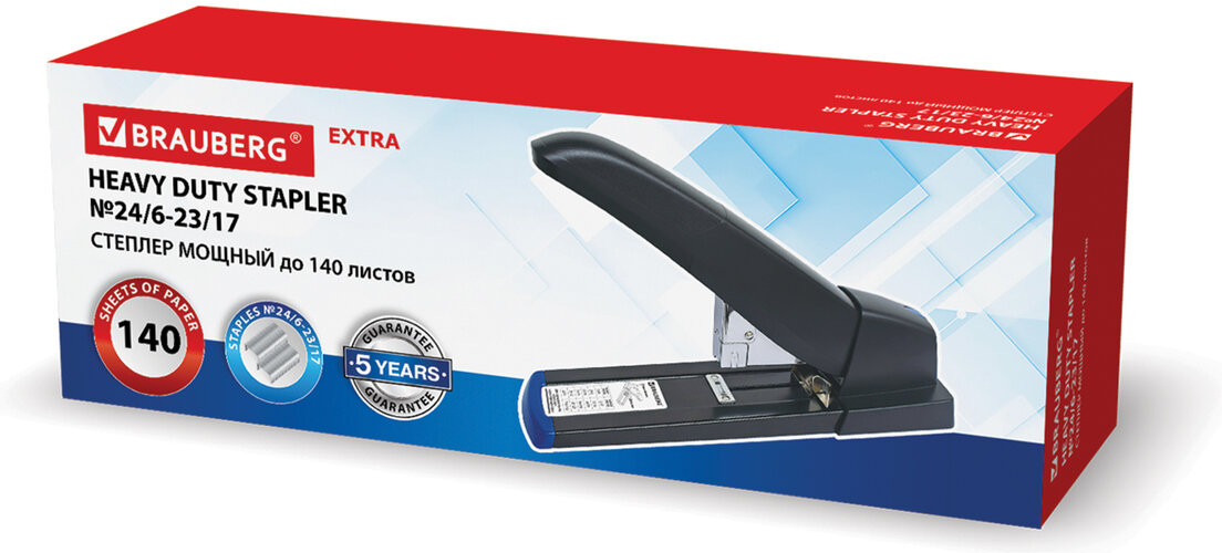 Brauberg СтеплерВ данный момент этот товар отсутствует в продаже. Возможно, у нас найдется аналогичный или похожий товар здесь. Серия: Heavy Duty Extra Мощный степлер BRAUBERG «Heavy Duty Extra» предназначен для работы с большим объемом документов. Рабочий механизм выполнен из металла, корпус — из металла и пластика черного цвета. Способен скрепить до 140 листов бумаги. Подходит для скоб № 24/6, № 26/6, № 23/8, № 24/8, № 23/10, № 23/13, № 23/15, № 23/17. Глубина закладки бумаги регулируется — до 61 мм. Закрытый вид сшивания. Фронтальная загрузка скоб. Мощный степлер для надежного скрепления большого объема ваших документов! Качественные материалы, долгий срок службы. Заказывайте прямо сейчас! |