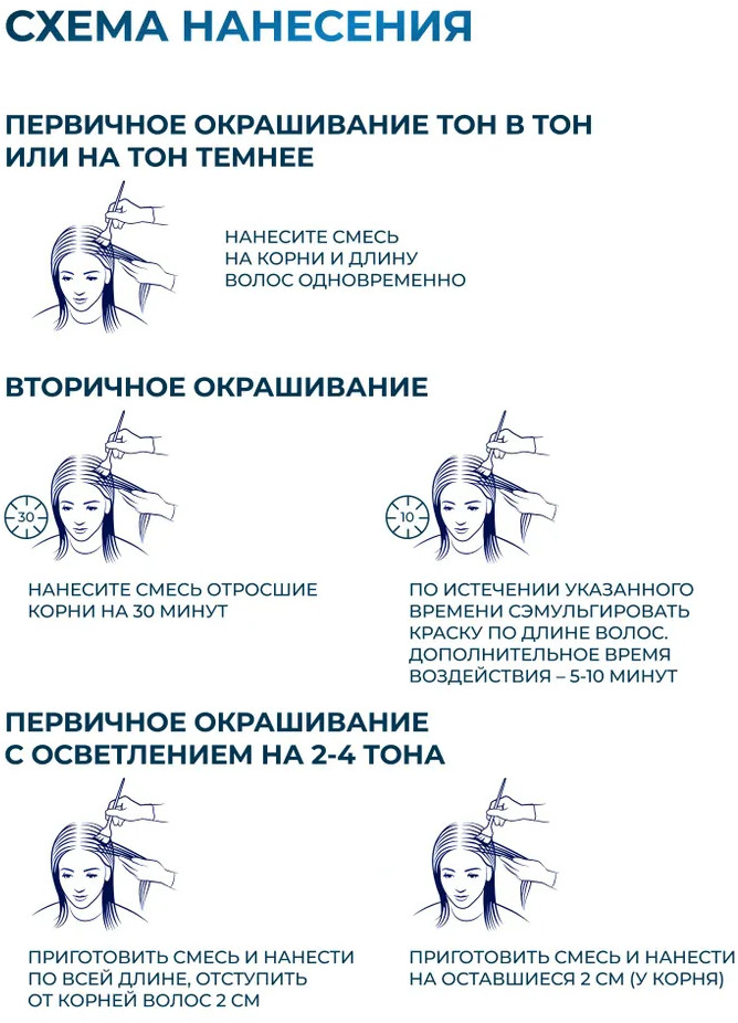 Рекомендуемые количества корректоров: 1 г = 2 см. На 30 г крем-краски (оттенки основной палитры): 10/X — 2 см, 9/X — 3 см, 8/X — 4 см, 7/X — 5 см, 6/X — 6 см, 5/X — 7 см, 4/X — 8 см, 3/X — 9 см, 1/X — 10 см. На 30 г крем-краски S-OS — 1 см.