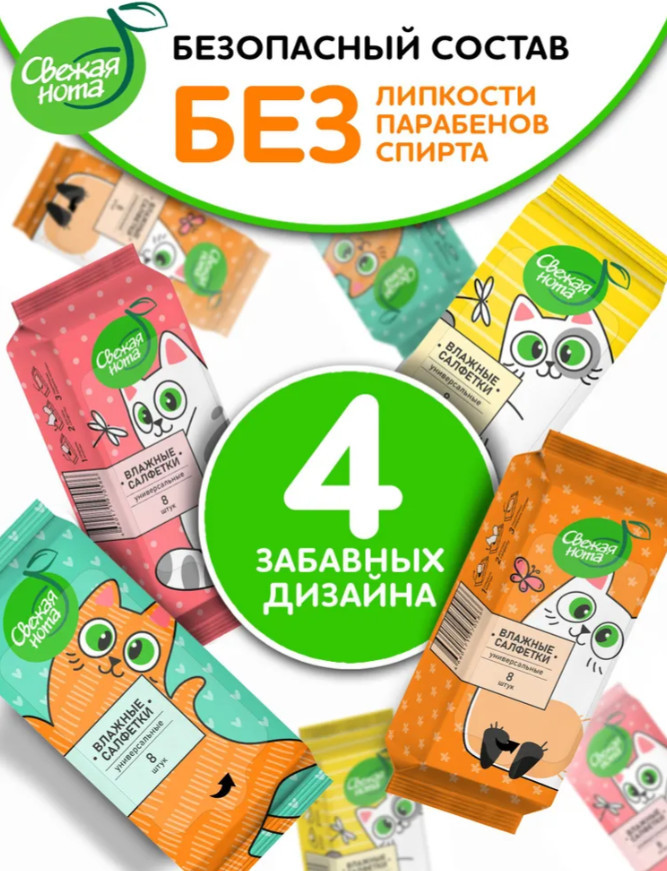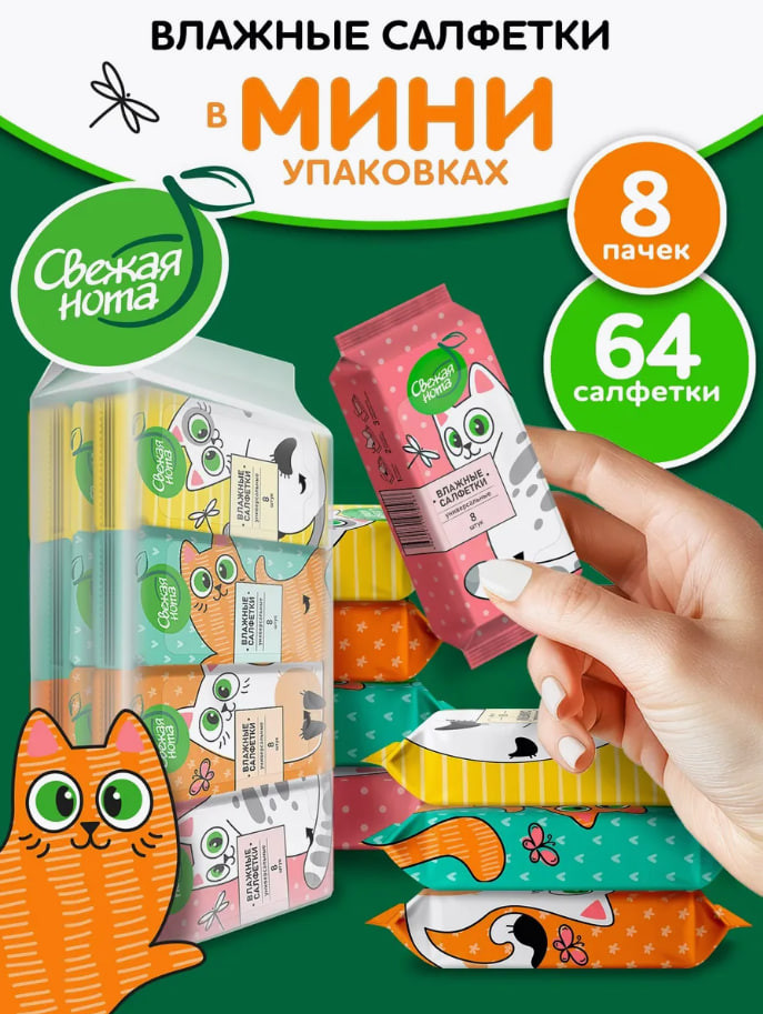 Влажные салфетки «Свежая нота» разработана специально для нежной кожи взрослых и детей. Универсальные влажные салфетки мини не содержат спирта, силиконов, парабенов и красителей. Эти влажные салфетки мини легко и бережно очищают от загрязнений и увлажняют кожу. В составе средства личной гигиены — экологически чистые безопасные материалы с гипоаллергенным составом, чтобы заботиться о здоровье кожи. Универсальные карманные косметические мини салфетки — это незаменимый ассортимент товаров для повседневного использования в любом месте для всей семьи. Лосьон салфетки обогащен экстрактом ромашки и алоэ, которые питают кожу, поддерживают естественный уровень pH и обеспечивают дополнительный уход и защиту. Пластиковый клапан надежно защищает салфетки от высыхания.