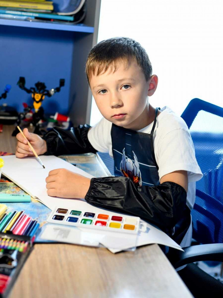 Феникс + Фартук с нарукавниками для уроков труда и рисования «Огненный робот»