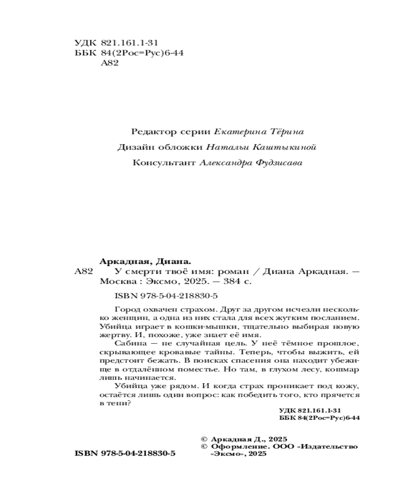 💳 Оплатить за товар можно при получении 🇰🇿 Есть бесплатная доставка по Казахстану от 1 дня 🎁 Копите бонусы с каждой покупки Серия: Выжить любой ценой. Психологический триллер Город охвачен страхом. Друг за другом исчезли несколько женщин, а одна из них стала для всех жутким посланием. Убийца играет в кошки-мышки, тщательно выбирая новую жертву. И, похоже, уже знает её имя. |