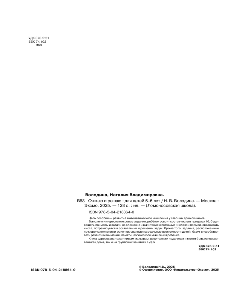 | Считаю и решаю: для детей 5-6 лет Наталия Владимировна Володина +25 (бонусов)