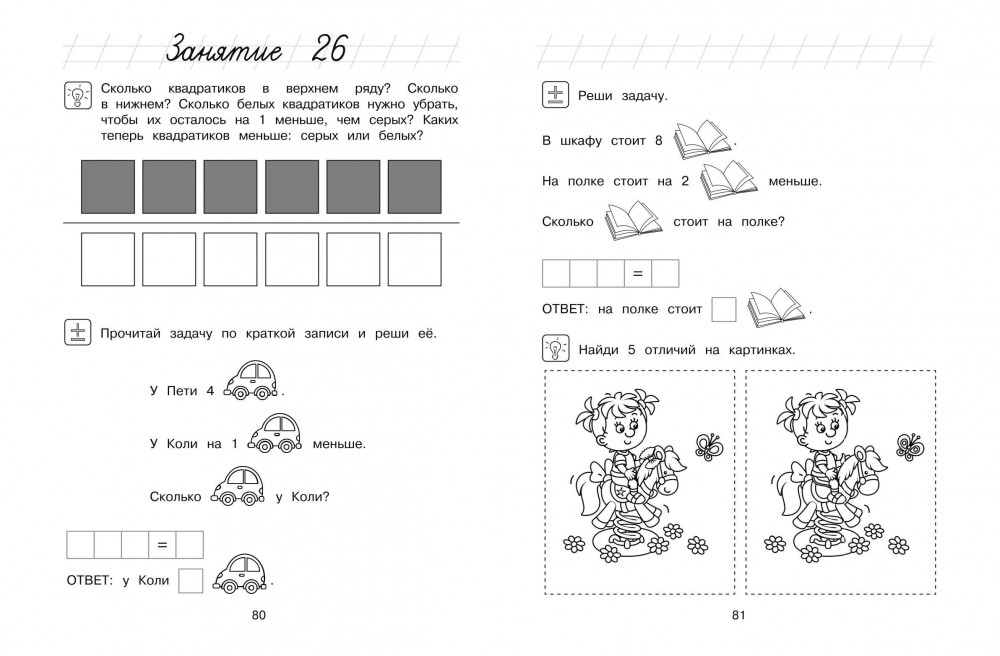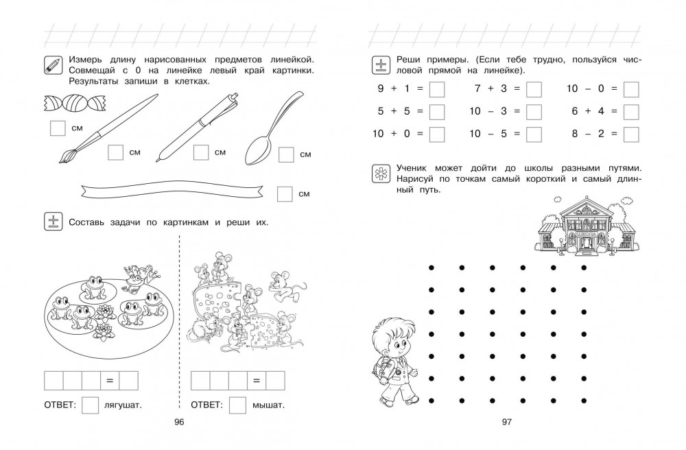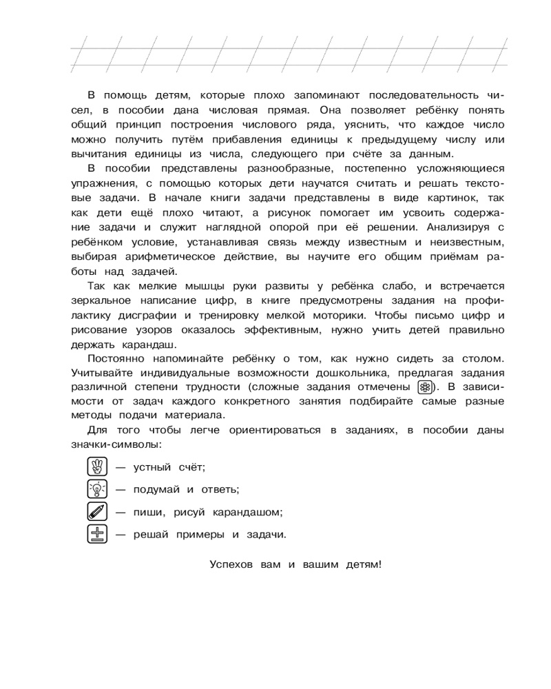 Выполняя интересные игровые задания, ребенок освоит состав числа в пределах 10, будет решать примеры и задачи на сложение и вычитание с помощью числовой прямой, сравнивать числа, потренируется в составлении и решении задач. Знания, умения и навыки, которые дошкольник приобретет в результате занятий, позволят ему почувствовать уверенность в себе и в дальнейшем их успешно использовать.