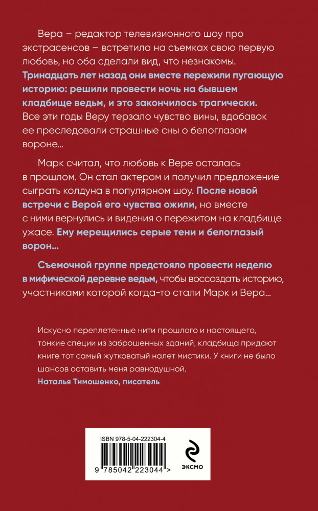 💳 Оплатить за товар можно при получении 🇰🇿 Есть бесплатная доставка по Казахстану от 1 дня 🎁 Копите бонусы с каждой покупки Серия: За гранью реальности. Мистические триллеры Альбины Нури Вера — редактор телевизионного шоу про экстрасенсов — встретила на съемках свою первую любовь, но оба сделали вид, что незнакомы. Тринадцать лет назад они вместе пережили пугающую историю: решили провести ночь на бывшем кладбище ведьм, и это закончилось трагически. Все эти годы Веру терзало чувство вины, вдобавок ее преследовали страшные сны о белоглазом вороне... |