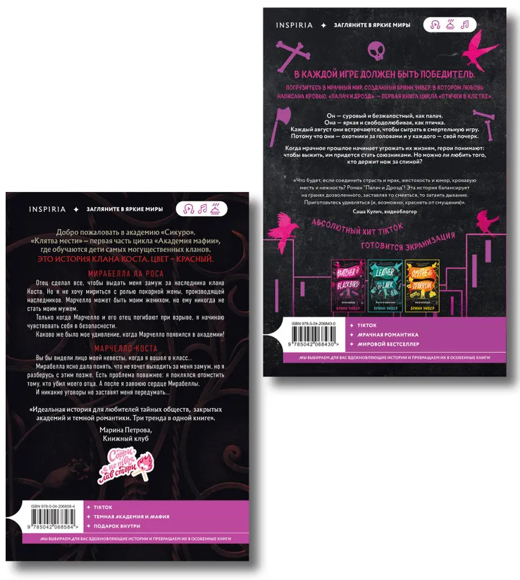 Погрузитесь в мрачный мир, созданный Бринн Уивер, в котором любовь написана кровью. «Палач и Дрозд» — первая книга цикла «Птички в клетке». Абсолютный хит TikTok. Готовится экранизация. Стильный покет с клапанами, кремовая бумага и та самая обложка с яркой розовой фольгой, взорвавшая Букток.