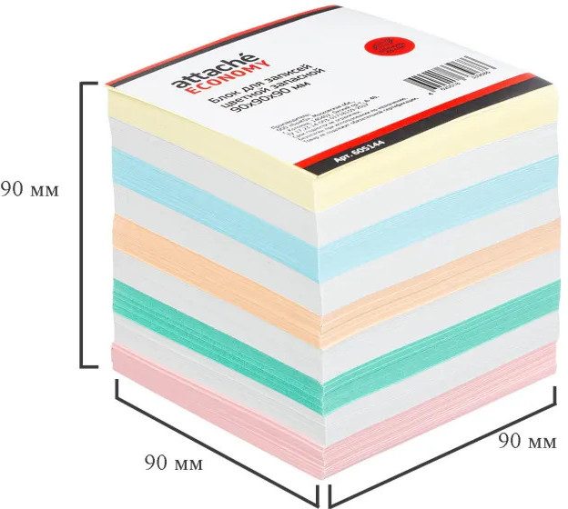 💳 Оплатить за товар можно при получении 🇰🇿 Есть бесплатная доставка по Казахстану от 1 дня 🎁 Копите бонусы с каждой покупки Блок для записей Attache Economy предназначен для работы в офисе или дома. Будет полезен в использовании для рабочих процессов и повседневных задач. Отлично подходит для работников офиса. Блок высотой 9 см сложен из квадратных листов размером 9x9 см. Листы не склеены между собой. Листы изготовлены из бумаги экономкласса белой плотностью 65 г/кв.м, цветной плотностью 80 г/кв.м. В блоке представлены листы шести цветов: белого, оранжевого, голубого, желтого, зеленого, розового. Цвет белой бумаги - оттенок белого, близкий к светло-серому. Блок для записей подходит для письма любыми типами ручек и карандашей. Для повышения удобства рекомендуется использование в пластиковых подставках и настольных органайзерах. Поставляется в термоусадочной пленке, защищающей блок при транспортировке. В блоке +/- 665 листов. Законодательные и технические документы: |
