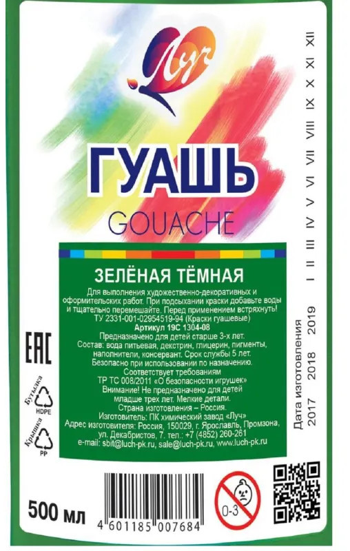 💳 Оплатить за товар можно при получении 🇰🇿 Есть бесплатная доставка по Казахстану от 1 дня 🎁 Копите бонусы с каждой покупки Гуашь Луч зеленая темная 500 мл Предназначена для детского творчества, художественных, оформительских, рекламных, декоративно-прикладных работ. Краска изготовлена на основе натуральных компонентов и высококачественных пигментов. Обладает хорошей кроющей способностью и чистотой цвета. Поставляется в пластиковой бутылочке объемом 500 мл, без кисти. Законодательные и технические документы. |