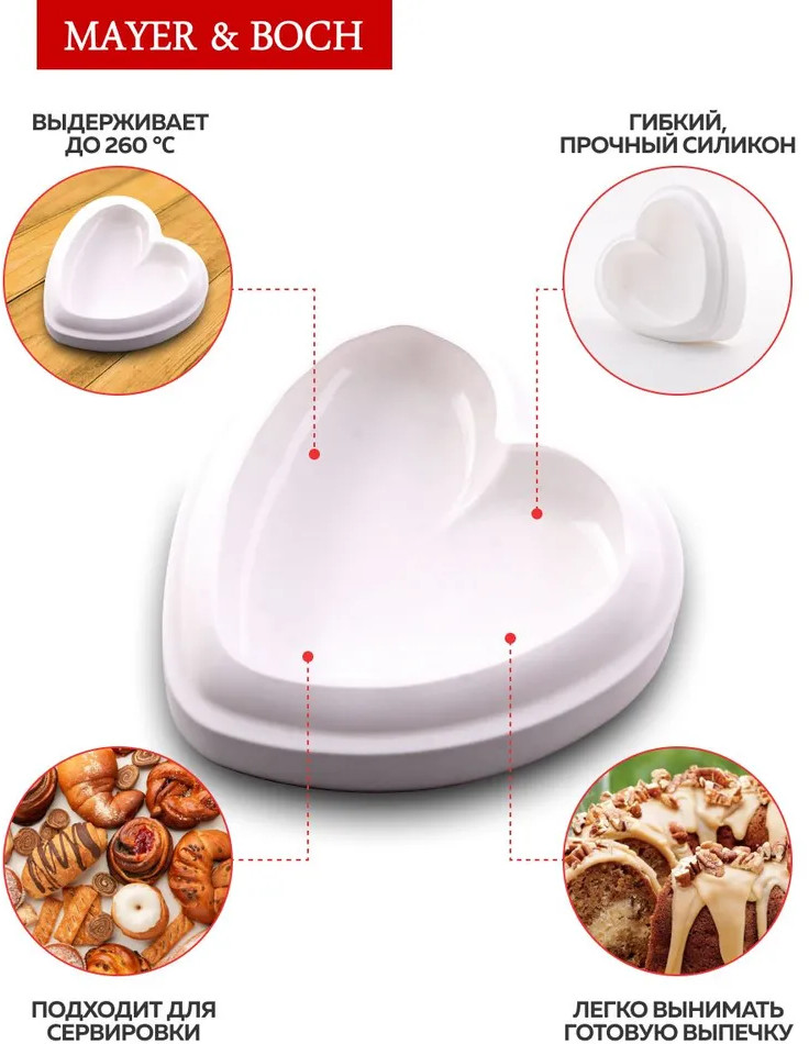 Силиконовая форма «Сердце» — это универсальный инструмент для кулинарного и творческого самовыражения! Создавайте восхитительные десерты и оригинальные поделки своими руками с легкостью. Эта многофункциональная форма идеально подходит для выпечки капкейков, изысканных десертов, печенья и нежных коржиков, превращая каждый десерт в маленький шедевр. Изделие станет вашим незаменимым помощником в создании сладких угощений к 8 марта, Дню Святого Валентина или любому другому празднику любви. Этот силиконовый молд открывает безграничные возможности для воплощения ваших кулинарных фантазий: от создания нежного марципана и аппетитных конфет до приготовления домашнего мармелада и изящных шоколадных фигурок. Он также идеально подходит для создания съедобных украшений на торт, делая каждый праздник особенным. Но «Сердце» — это не только кулинарный инструмент! Любители творчества по достоинству оценят его возможности в работе с мастикой, гипсом и полимерной глиной. Создавайте уникальные украшения, элементы декора или памятные сувениры.