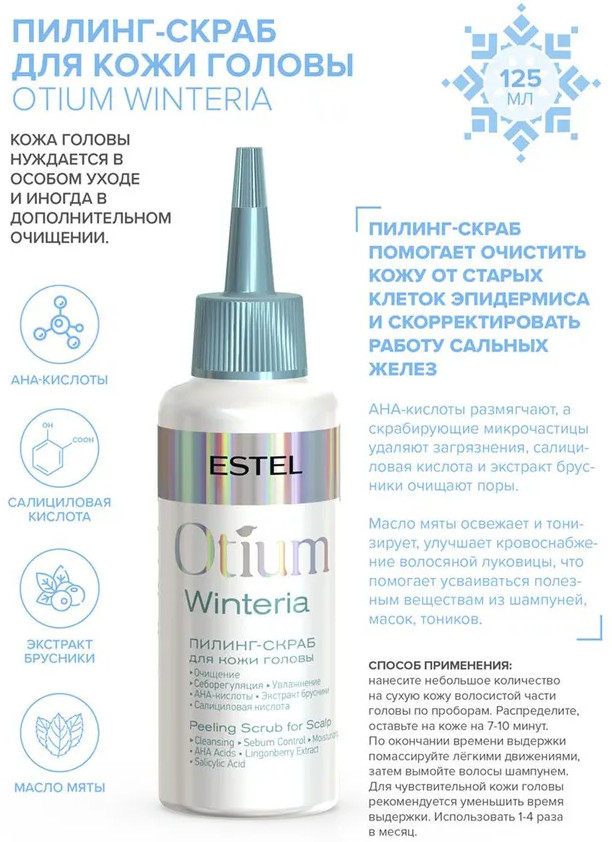 💳 Оплатить за товар можно при получении 🇰🇿 Есть бесплатная доставка по Казахстану от 1 дня 🎁 Копите бонусы с каждой покупки Серия: Winteria Кожа головы нуждается в особом уходе и иногда в дополнительном очищении. Пилинг-скраб помогает очистить кожу от старых клеток эпидермиса и скорректировать работу сальных желез. |