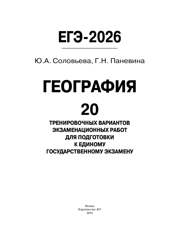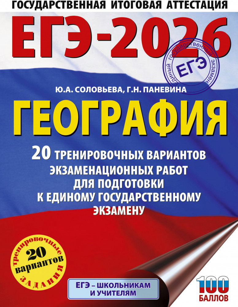 ЕГЭ-2026. География. 20 тренировочных вариантов экзаменационных работ для подготовки к единому государственному экзаменуГалина Николаевна Паневина, Юлия Алексеевна Соловьева -20% +92