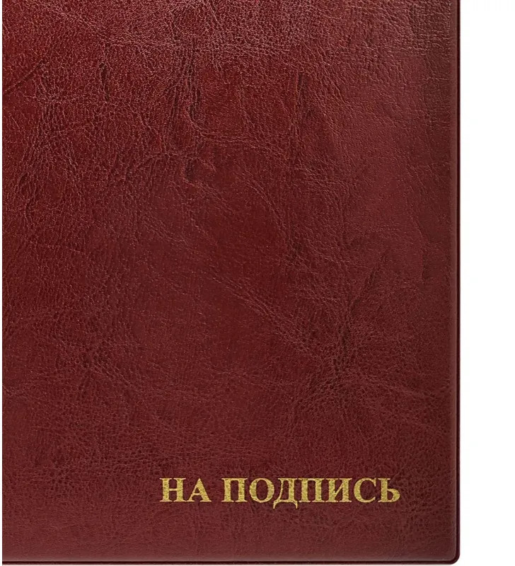 Папка адресная На подпись А4 ПВХ бордовая. Предназначена для подачи документов на подпись руководителю. Обложка и внутренняя выклейка выполнены из ПВХ бордового цвета. Имеет расширенный корешок (15 мм), поэтому вмещает до 200 листов. Благодаря строгому дизайну она подойдет для использования в государственных учреждениях и офисах. Этот стильный акцент способствует созданию деловой атмосферы, подчеркивает внимание к деталям и поддерживает профессиональный имидж на высоком уровне. Папка станет отличным выбором для встреч, где требуется представить документы в организованном виде. На папку можно нанести логотип. |