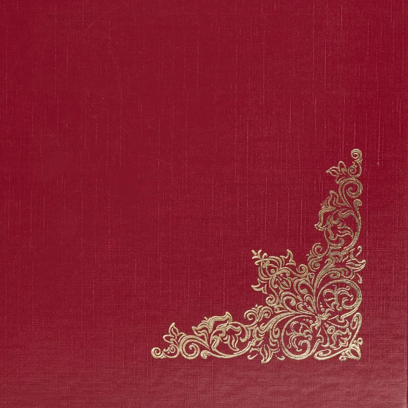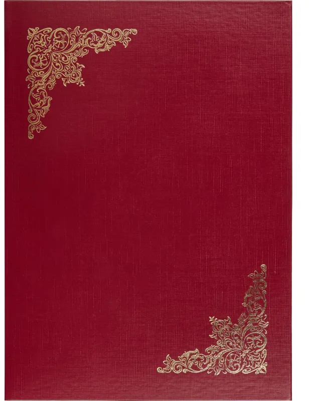 Папка адресная А4 Орнамент красная. Папка формата А4 бордового цвета выполнена из плотного картона, покрытого бумвинилом (материал из ПВХ на бумажной основе). На обложку нанесены угловые орнаменты (тиснение золотой фольгой). Без ляссе и уголков для крепления. Предназначена для подачи документов на подпись, а также для проведения торжественных церемоний, вручения наград, благодарностей и почетных грамот, для оформления поздравлений и приветственных речей. Удобна для транспортировки и хранения бумаг, поможет сохранить их презентабельный вид. Подходит для нанесения логотипа. |