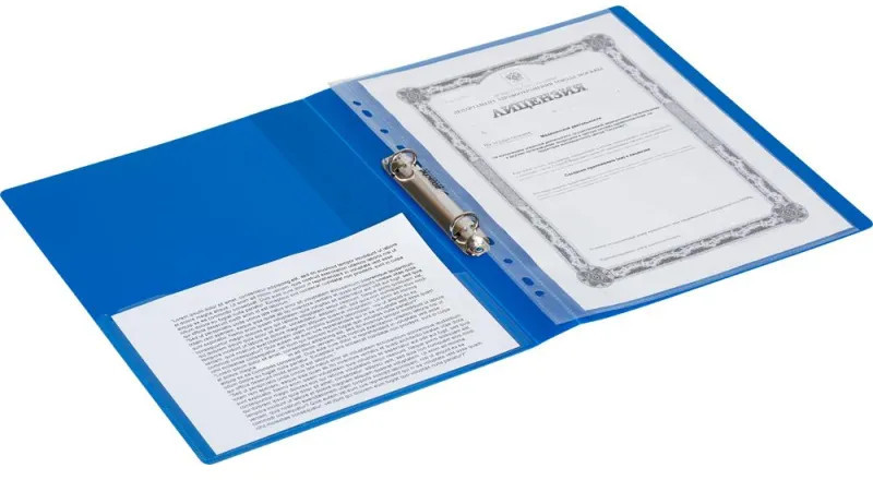 Папка на кольцах рекомендуются как для временного, так и длительного хранения, систематизации, архивирования документов. Такие папки используются в работе офисными сотрудниками различных специальностей, направлений, должностей. Можно использовать для домашних документов. Папка на двух кольцах Attache изготовлена из пластика толщиной 0,7 мм синего цвета. Формат А4. Снабжена механизмом на двух O-кольцах. Диаметр кольца - 17 мм. На внутренней стороне обложки есть прозрачный карман для документов. Ширина корешка составляет 32 мм. Папка на кольцах вмещает до 150 листов стандартной плотности. |
