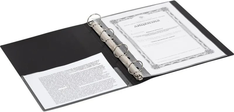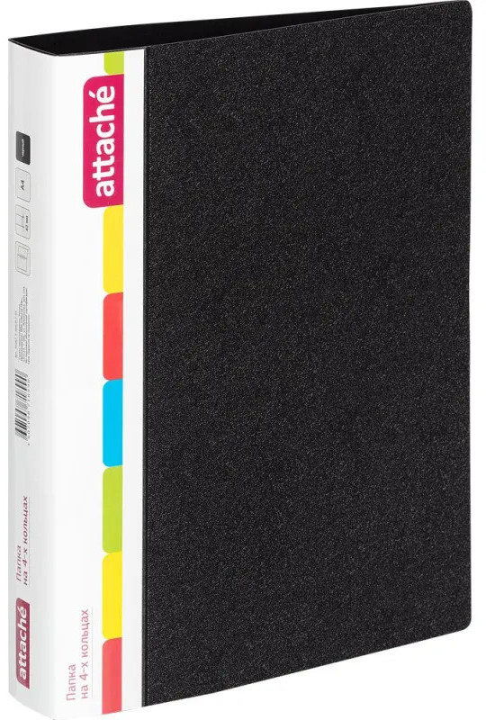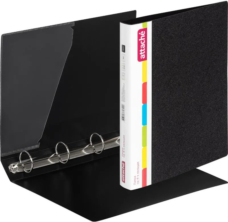 Папка на кольцах рекомендуются как для временного, так и длительного хранения, систематизации, архивирования документов. Такие папки используются в работе офисными сотрудниками различных специальностей, направлений, должностей. Можно использовать для хранения документов дома. Папка на четырех кольцах Attache изготовлена из пластика толщиной 0,7 мм черного цвета. Формат А4. Снабжена механизмом на четырех O-кольцах. Диаметр кольца - 35 мм. На внутренней обложке есть прозрачный карман для документов. Корешок шириной 42 мм имеет карман для сменной этикетки. Папка на кольцах вмещает до 300 листов стандартной плотности. |