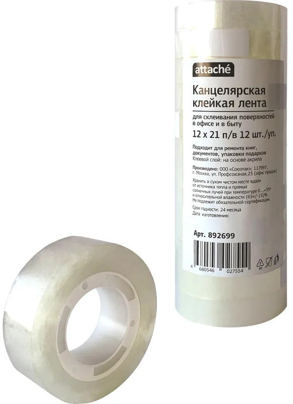 Attache Набор клейкой ленты канцелярскойВ данный момент этот товар отсутствует в продаже. Возможно, у нас найдется аналогичный или похожий товар здесь. Канцелярская клейкая лента Attache разработана специально для канцелярских нужд.Подойдет для решения большинства задач в офисе, школе и дома, связанных с упаковкой, запечатыванием, мелким ремонтом и творчеством.Имеет гарантированную длину 21 м и ширину 12 мм и обладает высокой клеящей способностью. Отличается прозрачностью и прочностью 35 мкм. Имеет специальное покрытие, благодаря которому разматывается равномерно и легко.Упаковка - термоусадка из 12 роликов.Канцелярская клейкая лента Attache проста и удобна в использовании. |